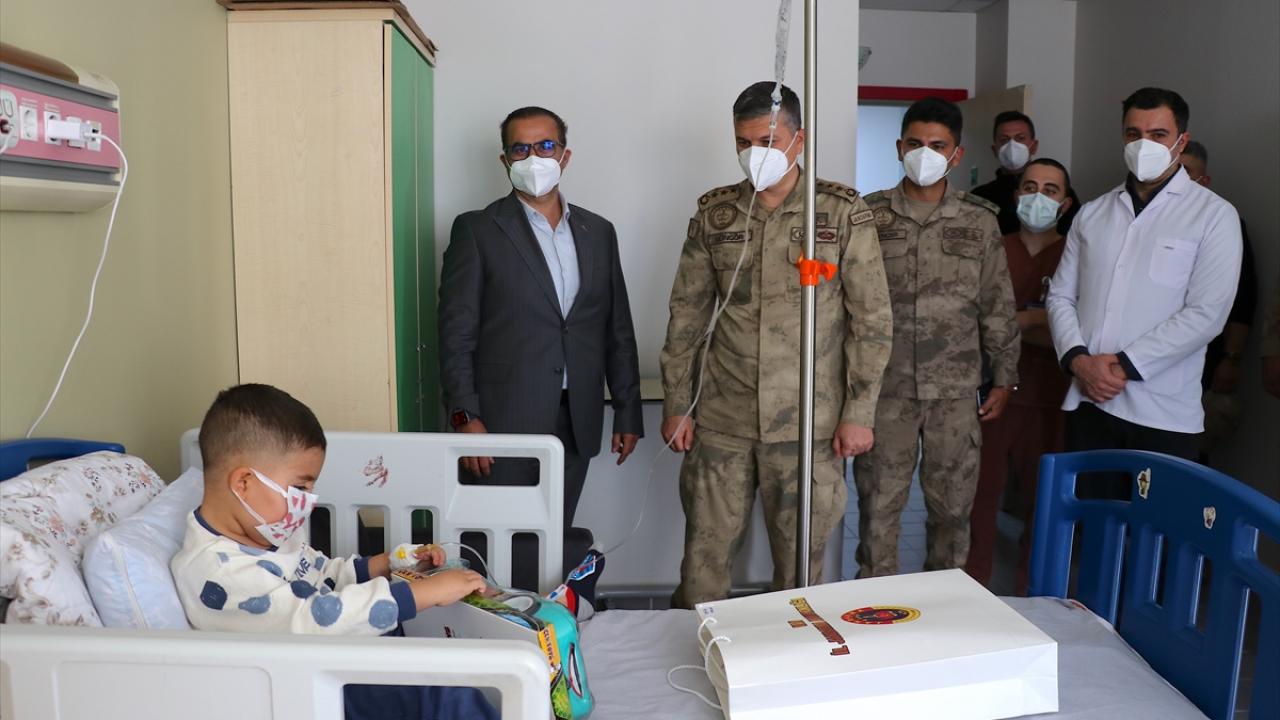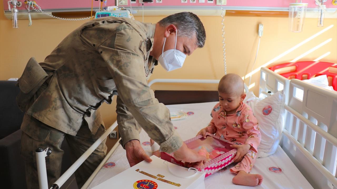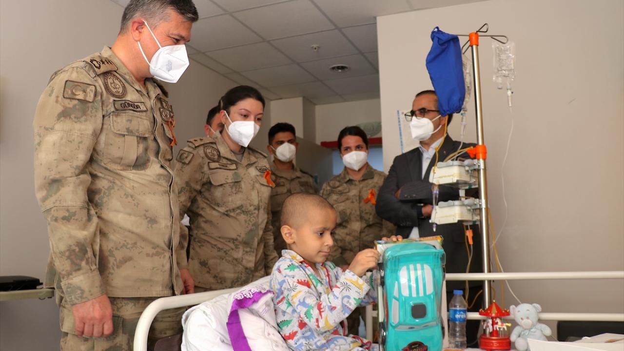 Kentte huzur ve güvenliğin sağlanması için gece gündüz görev yapan jandarma personeli, bu kez lösemi tedavisi gören minik kalplere dokunmak, onlara moral vermek için çalışma yürüttü.