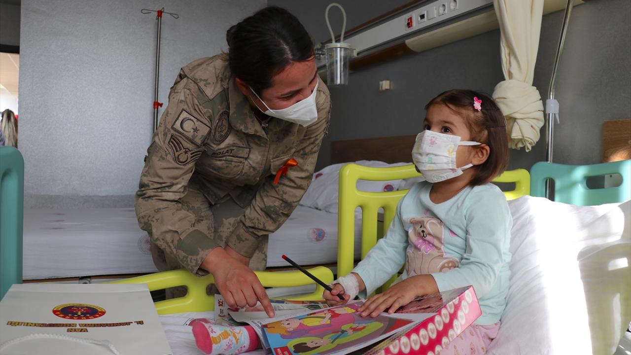 Tedavisi süren Berfin de "Jandarma ekipleri bana oyuncak bebek hediye etti. Pencereden jandarmanın gösterisini izledim. Camlara kalpler çizildi. Çok mutlu olduk." dedi.