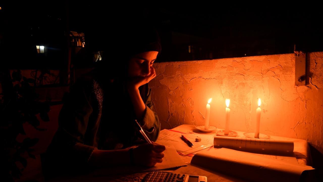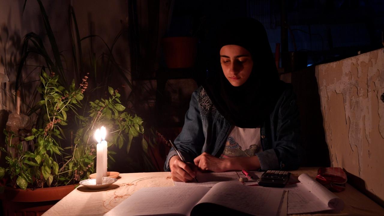 Elektrik kesintiler nedeniyle başkent Beyrut`taki bazı öğrenciler mum ışığında ders çalıştı.