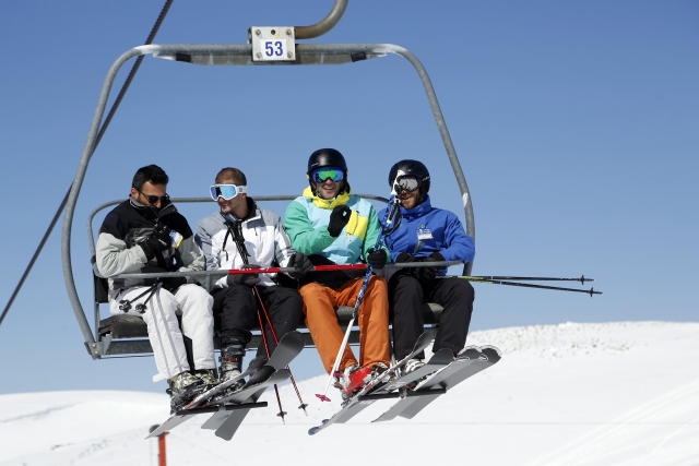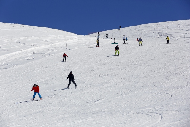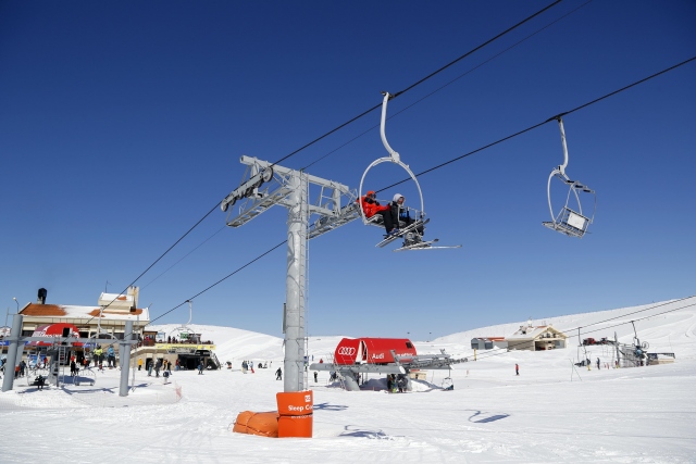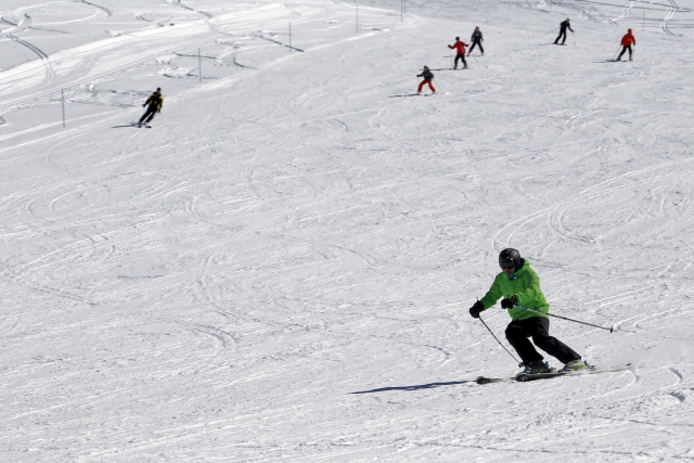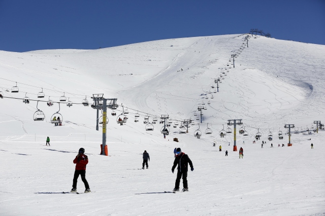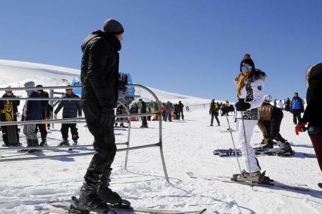 Lübnanlı kayakseverler, başkent Beyrut yakınındaki Kfardebiyan Kayak Merkezi'nde, güneşli havada kayak yapmanın tadını çıkarıyor. Ülkede kış turizminin gözde Faraya'da, son aylarda etkili olan kar yağışı sebebiyle kayak merkezlerinde yoğunluk yaşanıyor.