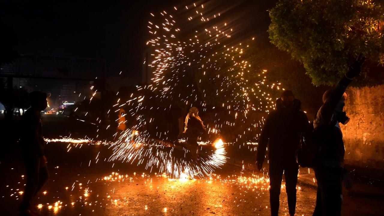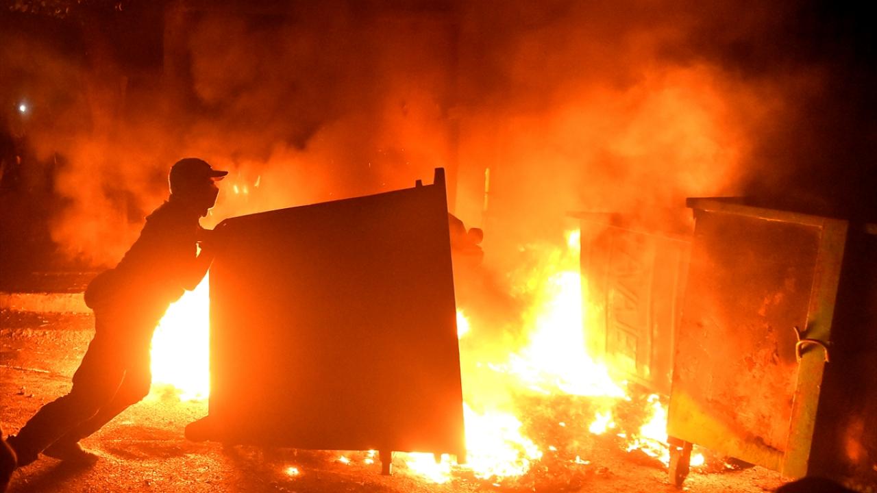 Bazı göstericiler, ateş yakarak bazı yolları kapatı.