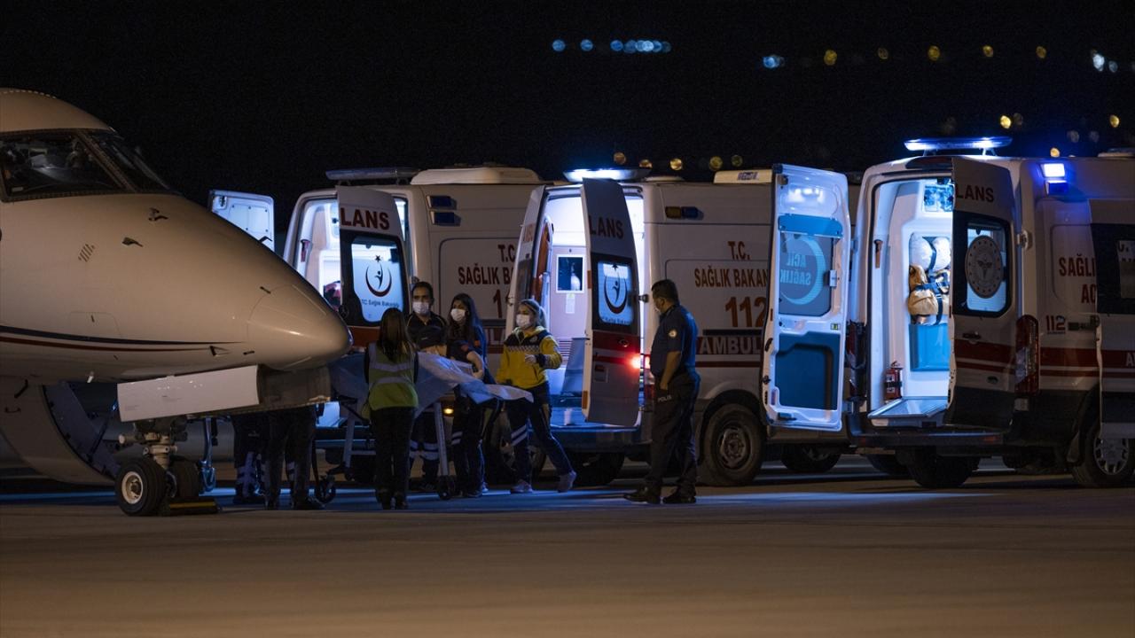 Saat 01.30`da Ankara Esenboğa Havalimanına inen uçağı karşılayan sağlık görevlileri yaralıları ambulanslarla tedavi görecekleri Ankara Şehir Hastanesine sevk etti.