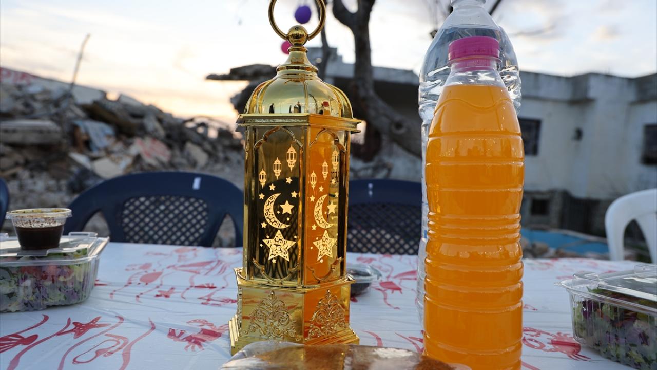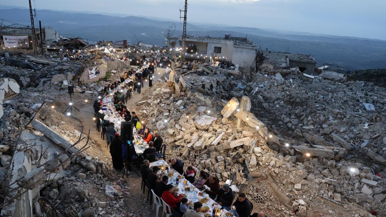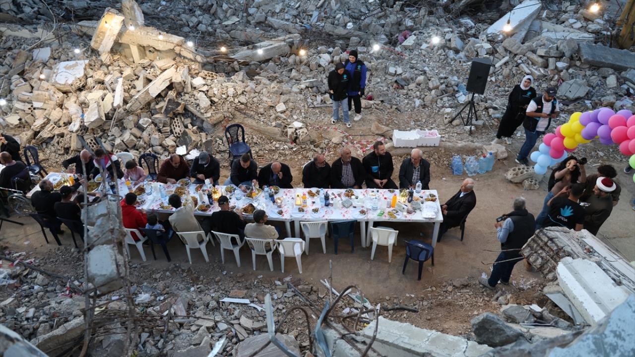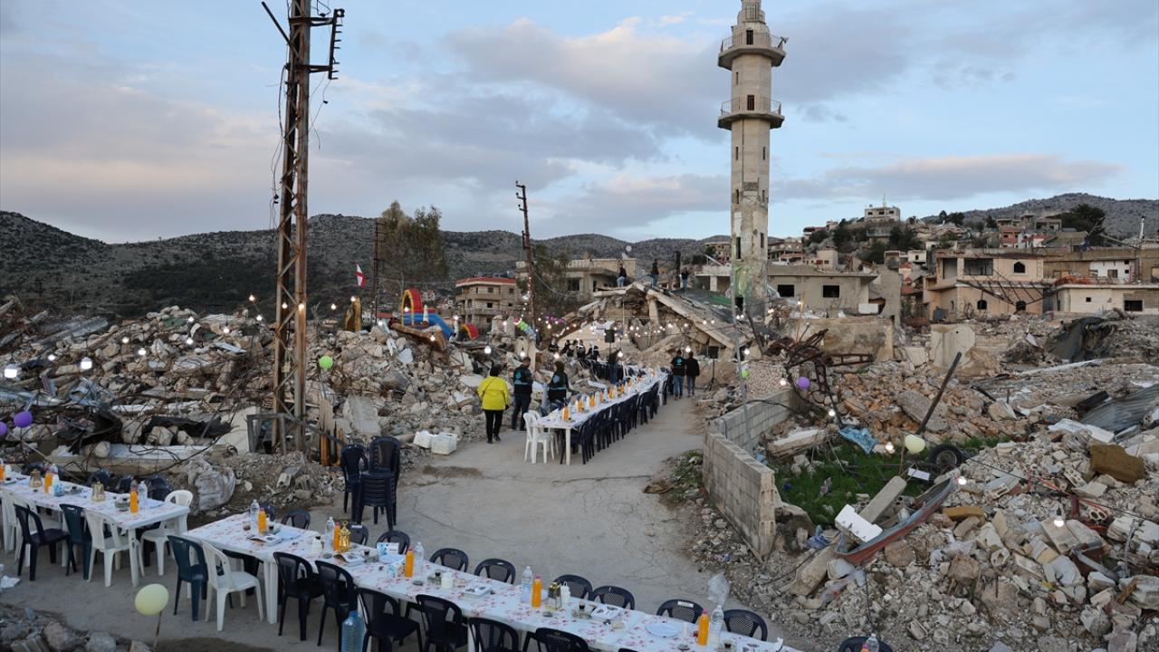 Kefr Şuba beldesinde enkaz arasında organize edilen toplu iftar programında, yaklaşık 400 Lübnanlı hep birlikte oruçlarını açtı.