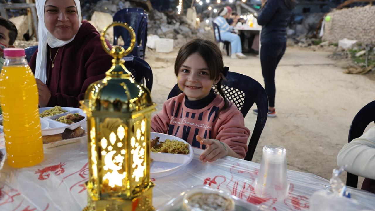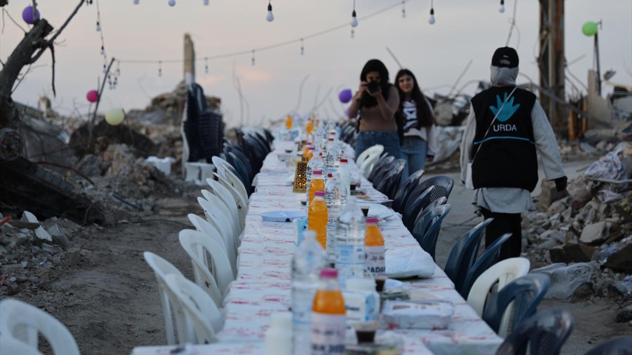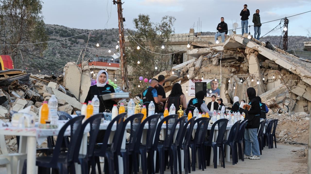 Gönüllülerin girişimleriyle organize edilen iftar programında, İsrail saldırılarının yol açtığı yıkımdan sonra evsiz kalan belde sakinleriyle dayanışma mesajı verildi.