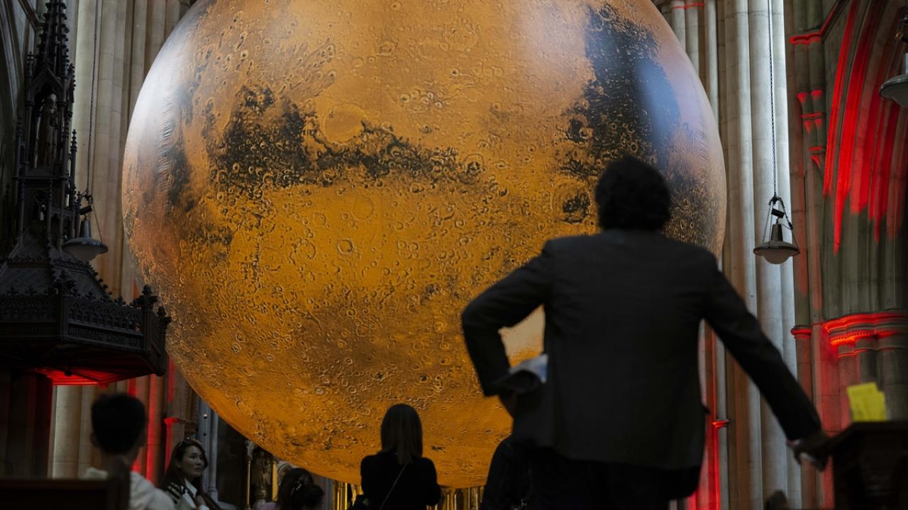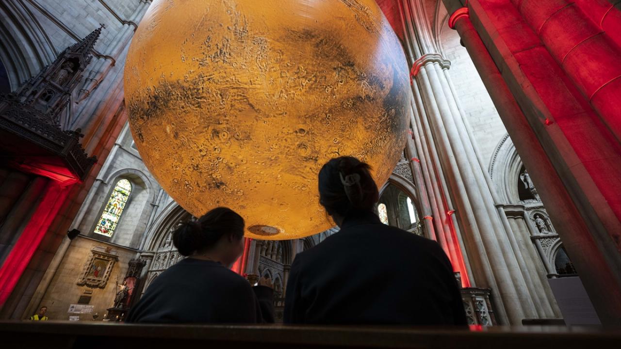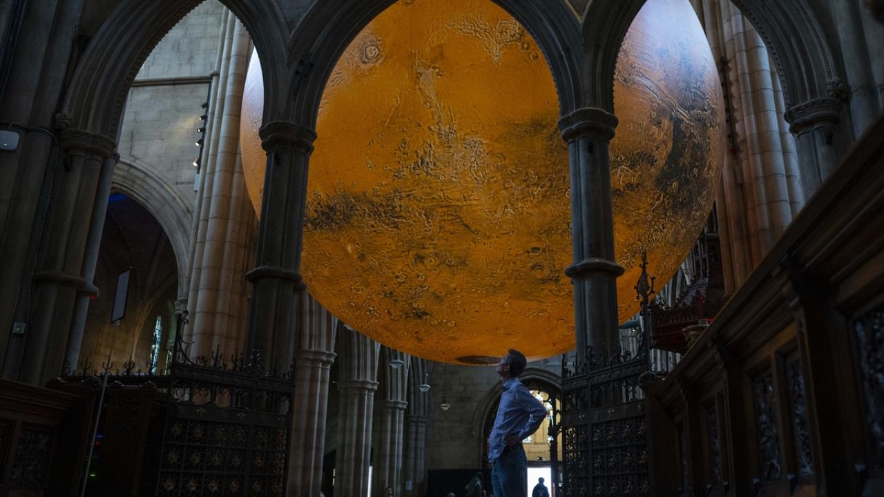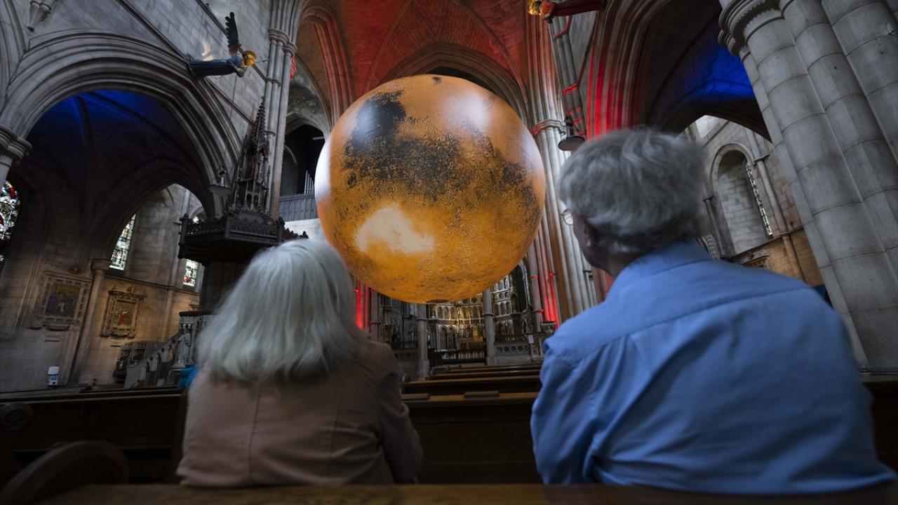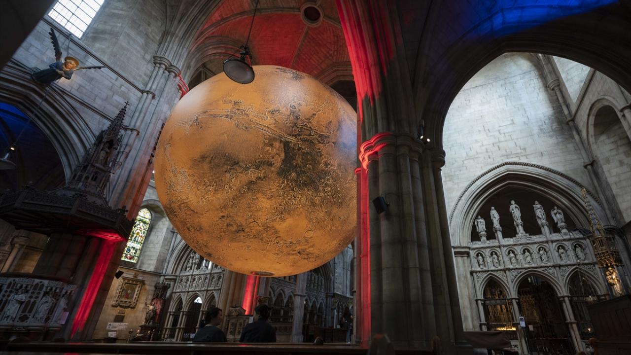 Sanatçı Luke Jerram'ın, NASA görüntülerinden oluşturduğu yedi metre çapındaki üç boyutlu “MARS | WAR & PEACE” isimli sanat eseri Kensington ve Chelsea festivali kapsamında Londra'da sergileniyor.