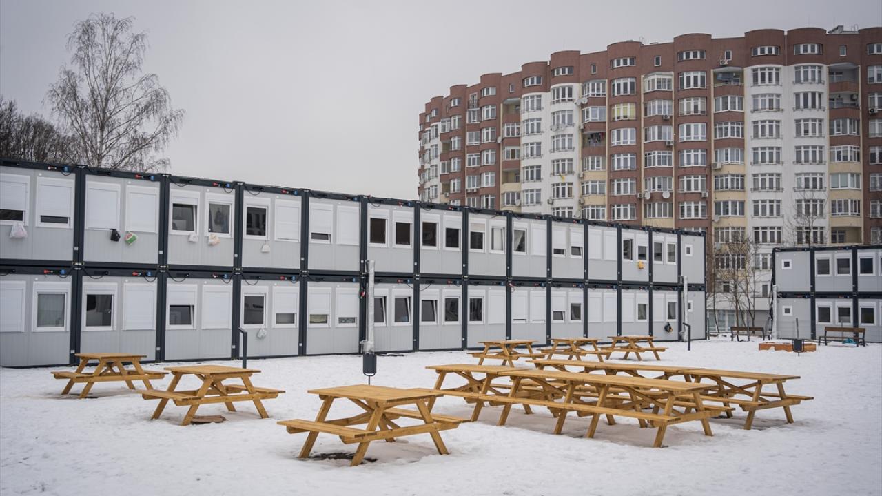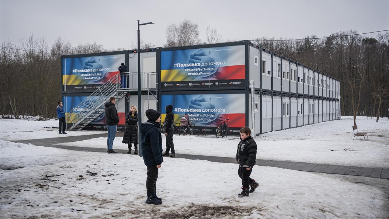 Rusya-Ukrayna savaşı devam ederken cephe hattından güvenli yerlere kaçan siviller için Lviv’de modüler kasaba oluşturuldu.