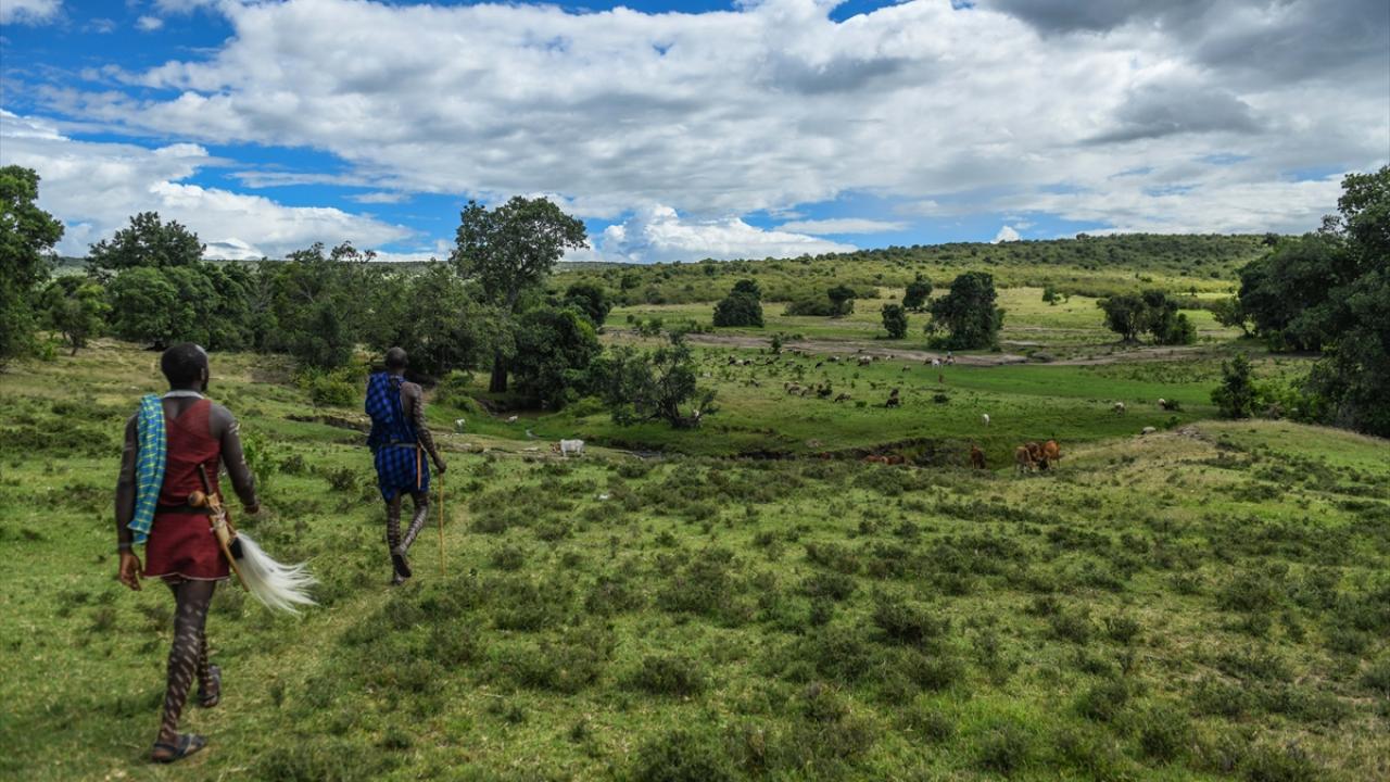 Kenya’nın güneybatısındaki Sekenani Kampı’nda görüntülenen Maasai topluluğu, geleneksel yaşam biçimlerini modern etkileşimlerle harmanlayarak kültürel miraslarını yaşatmayı sürdürüyor.