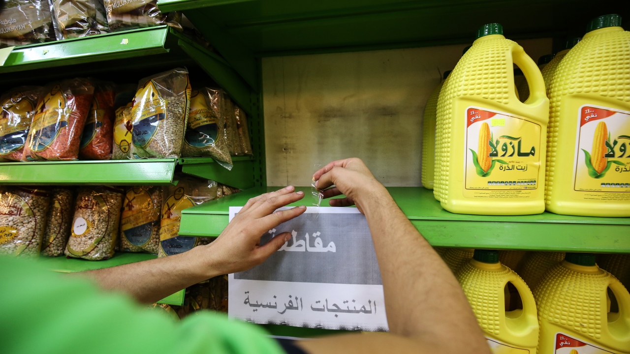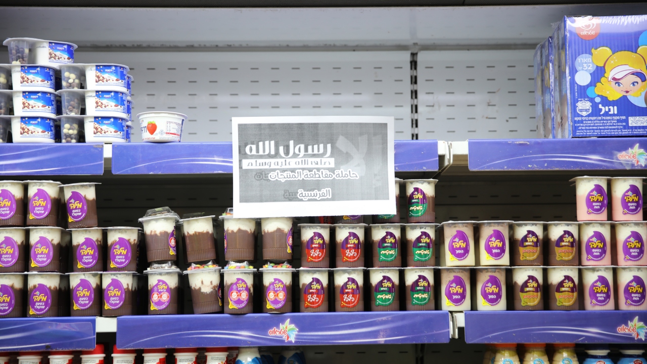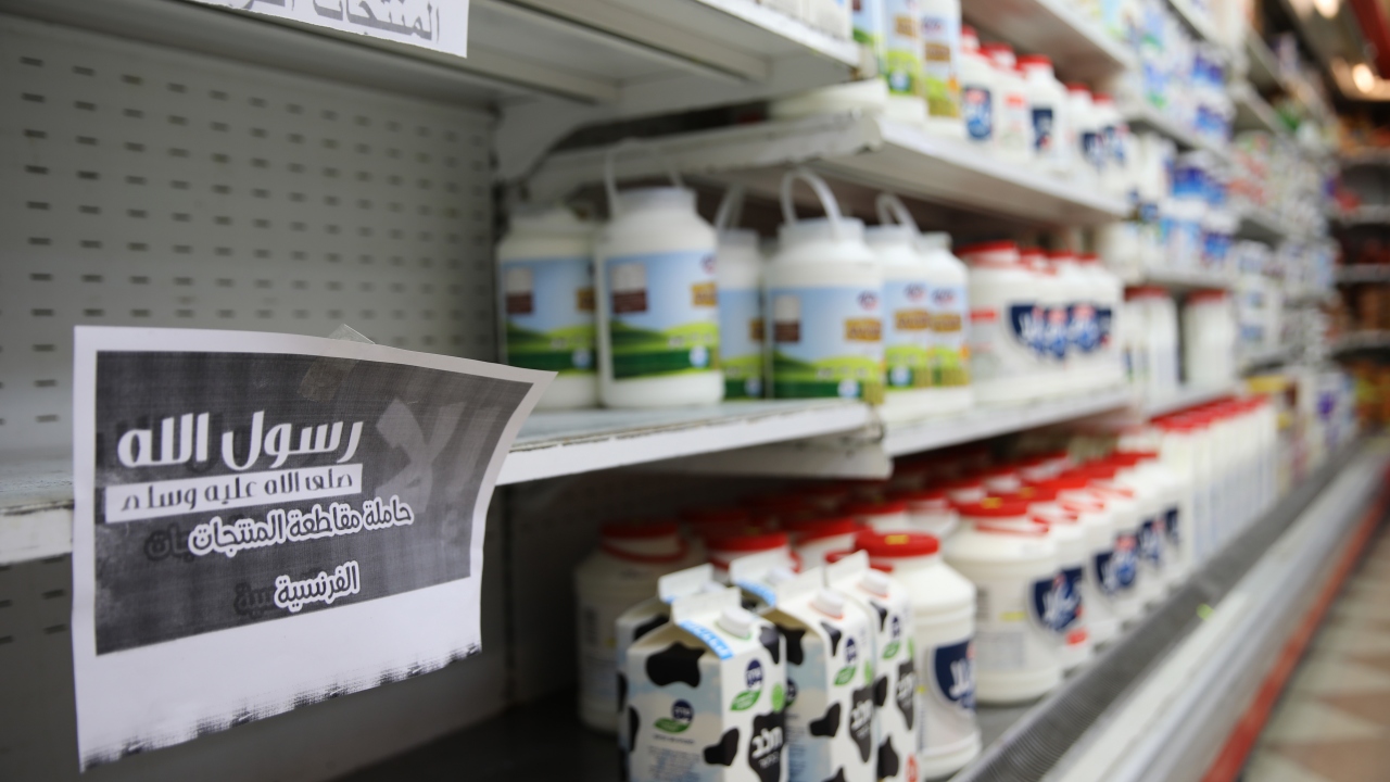İsrail işgali altındaki Doğu Kudüs’te yer alan bazı marketlerde, Fransa Cumhurbaşkanı Emmanuel Macron’un Hazreti Muhammed'i hedef alan karikatürleri savunması ve İslam karşıtı tavrına tepki olarak Fransız ürünleri raflardan kaldırılarak satışları sonlandırıldı. Fransız mallarının boşaltıldığı raflara, “Fransız ürünlerini boykot ediyoruz”, “Allah'ın Resulü, salat ve selam ona olsun” mesajları asıldı.