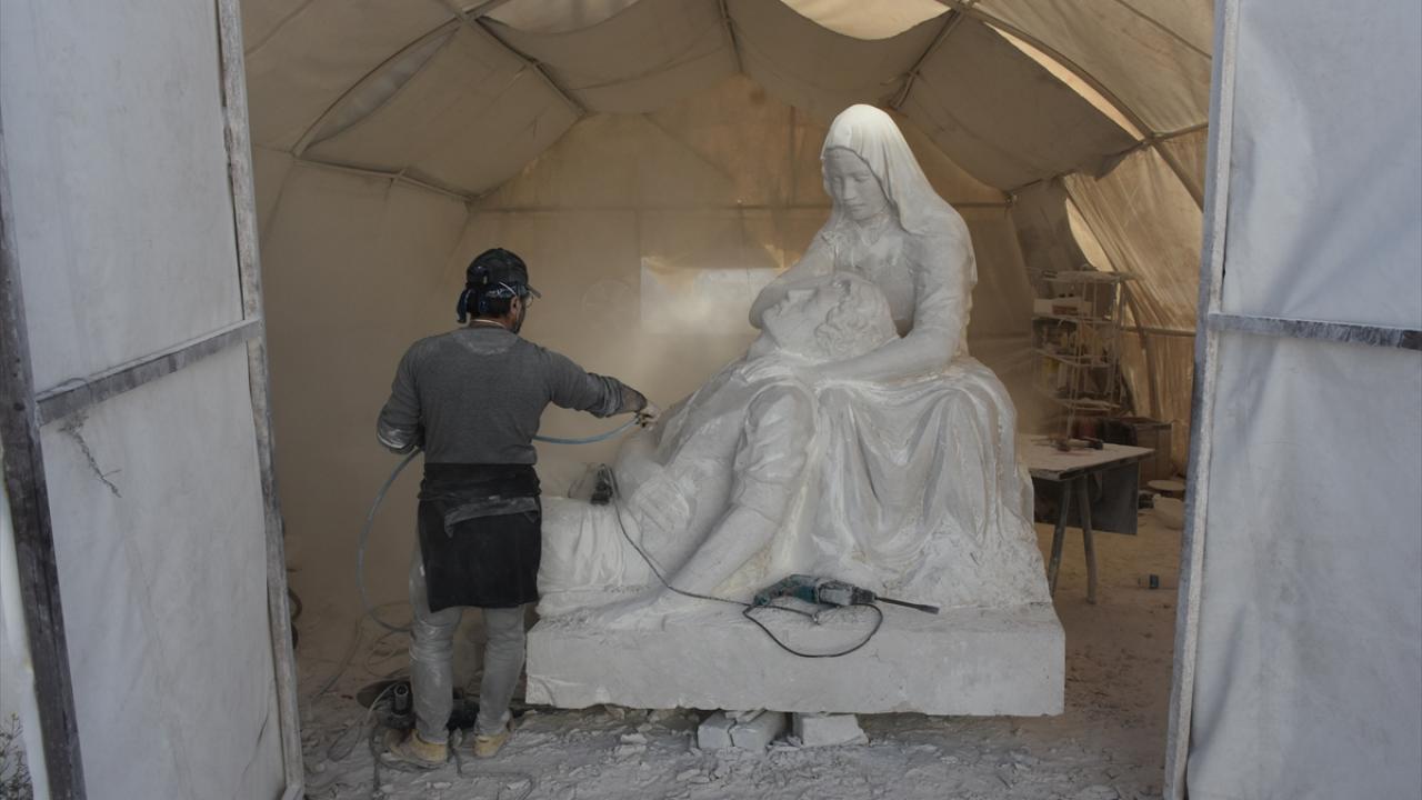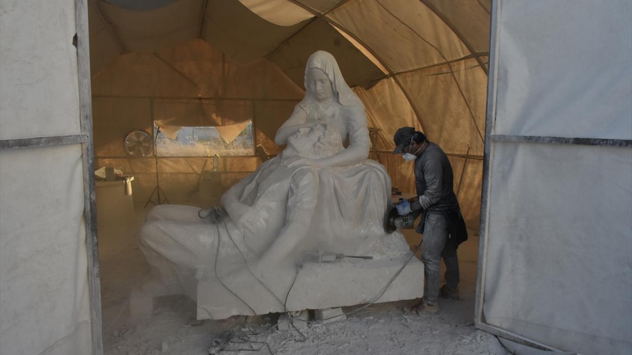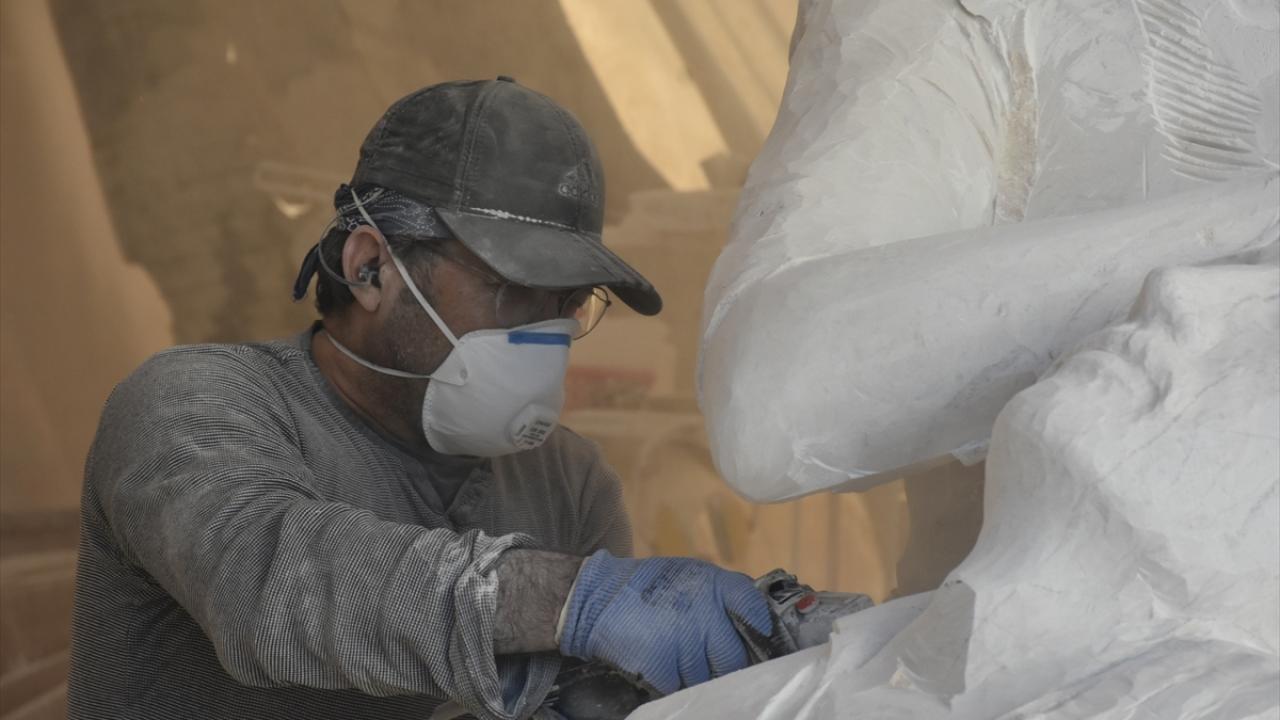 Afyonkarahisar'ın İscehisar ilçesinde yaşayan 48 yaşındaki maden mühendisi ve heykeltıraş Adnan Baysan, tonlarca ağırlıktaki mermer blokları aylarca çalışarak sanat eseri haline getiriyor.