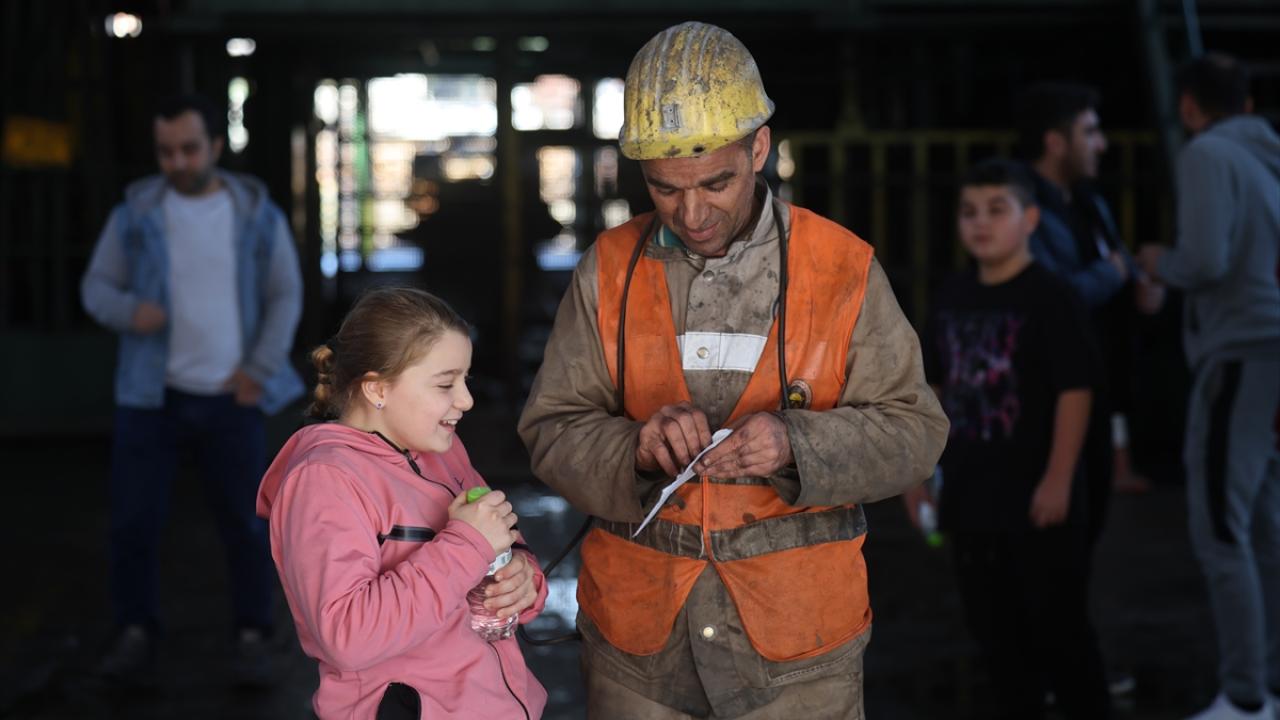 Etkinlik kapsamında madenci çocukları, babaları için özel mektuplar hazırladı. Vardiya çıkışında çocuklarını karşılarında gören madenciler duygu dolu anlar yaşadı.