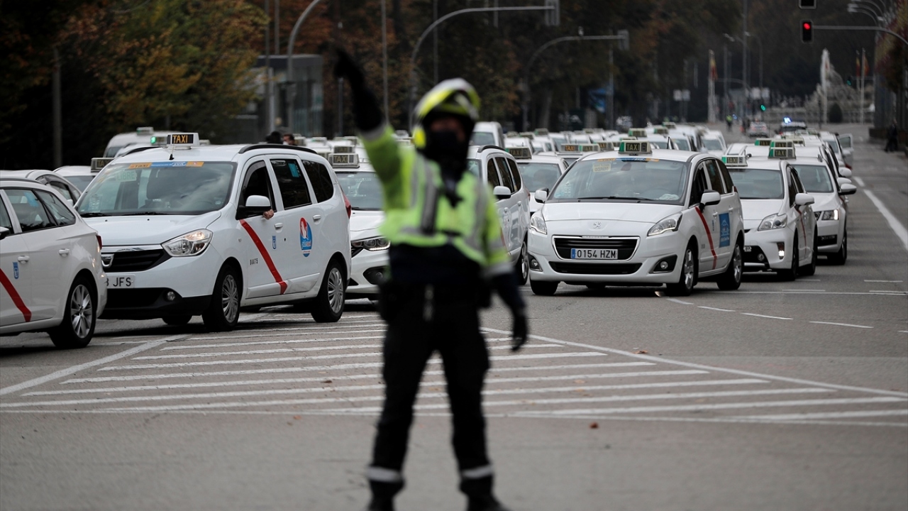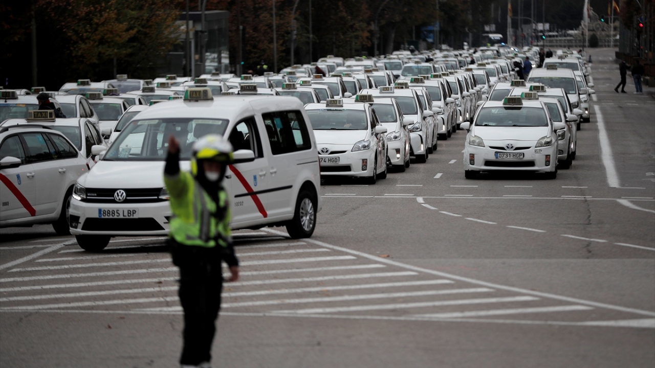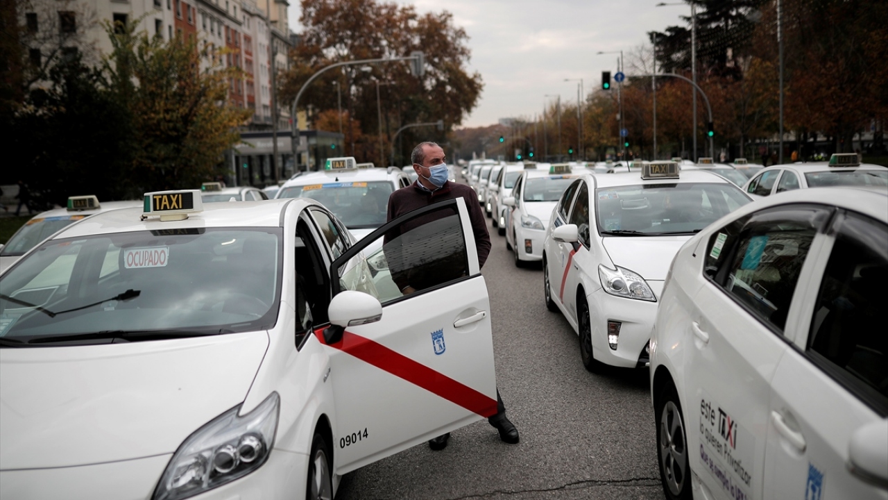 İspanya'nın başkenti Madrid'de taksiciler, Kovid-19 salgınında alınan önlemler nedeniyle işlerinin ve gelirlerinin düştüğünü belirterek, sektöre yönelik yardımların arttırılması talebiyle kent merkezinde turlayarak eylem yaptı.