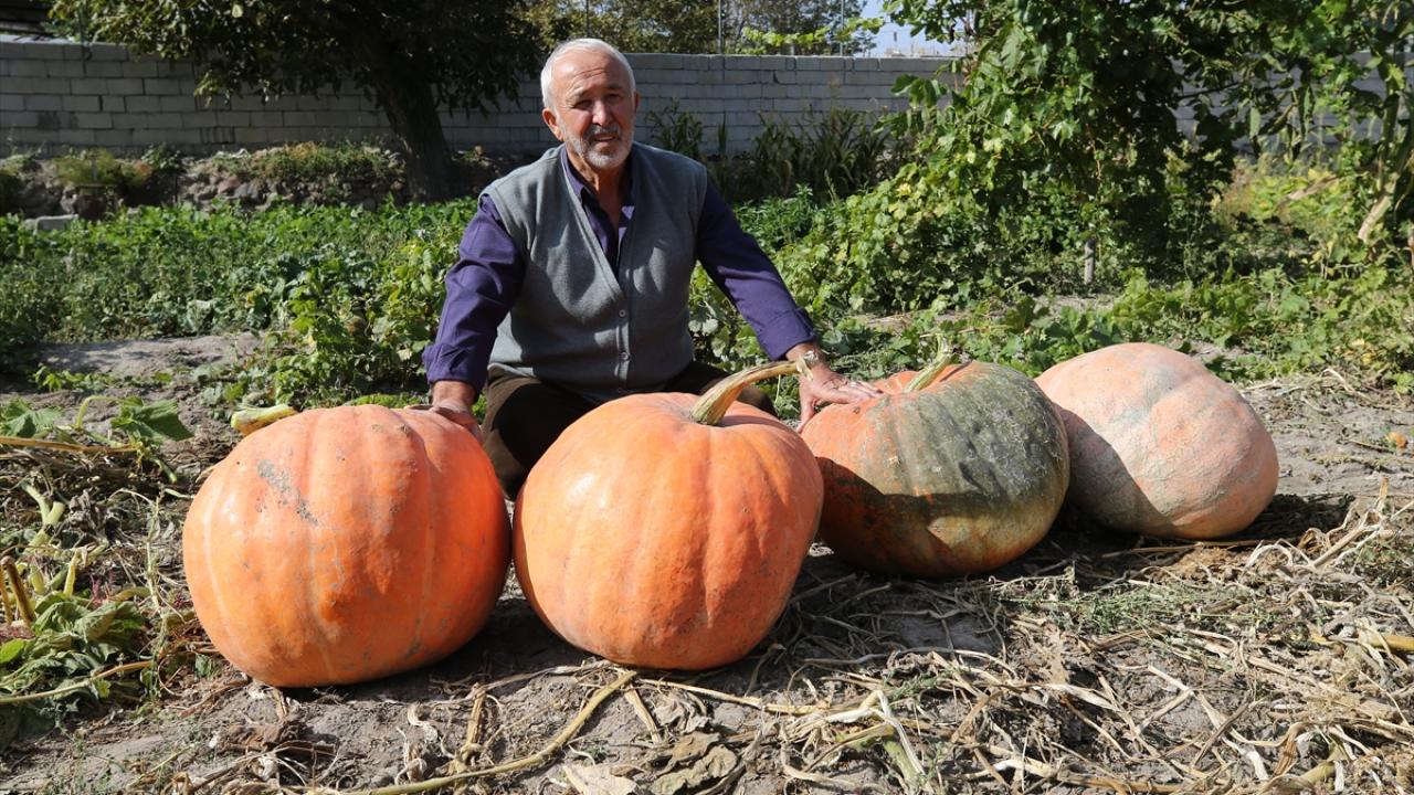 Arıcı, gazetecilere yaptığı açıklamada, bahçesinde yetişen kabaklardan bazılarının normalden fazla geliştiğini söyledi.