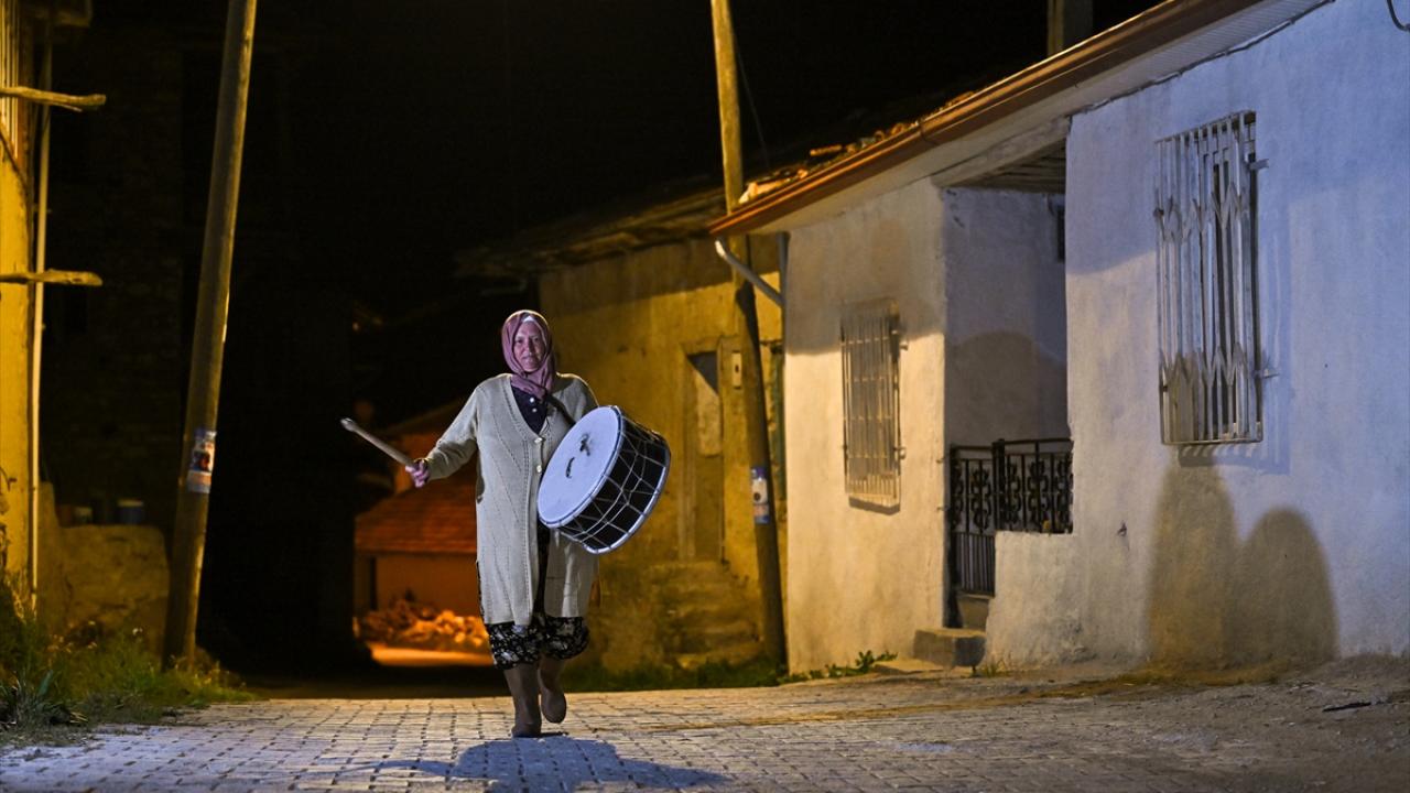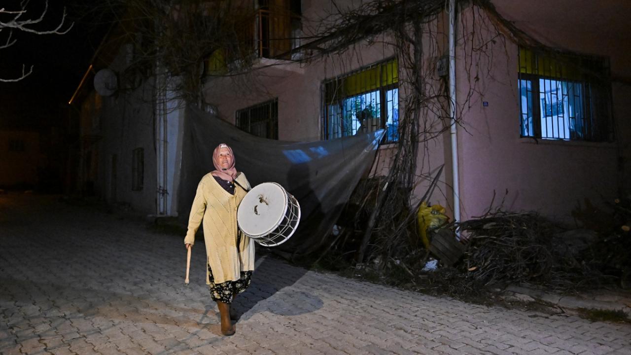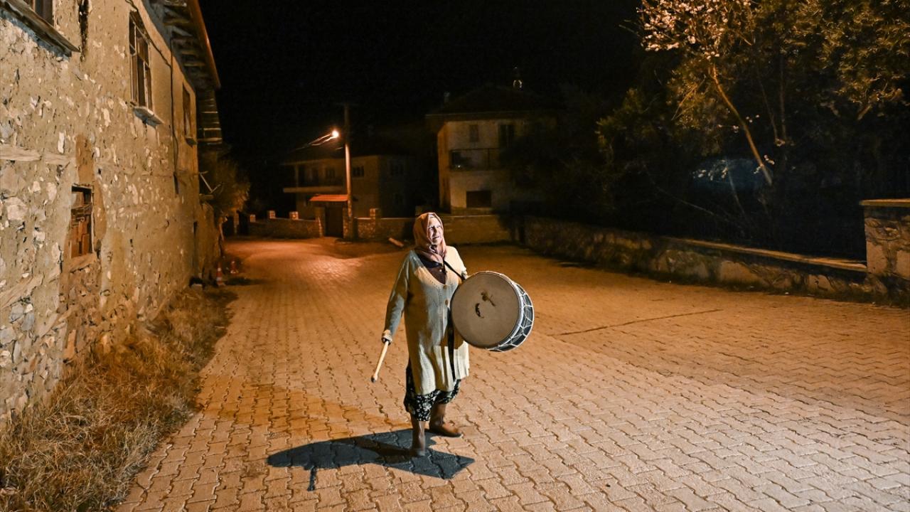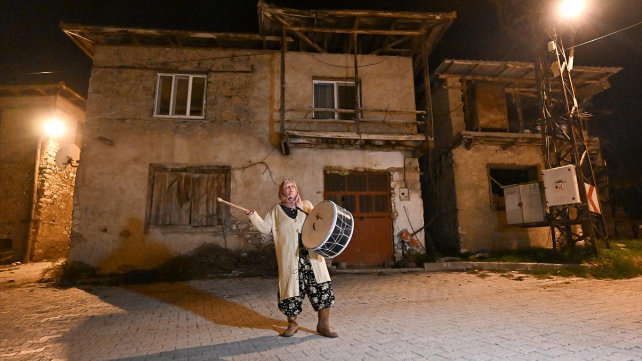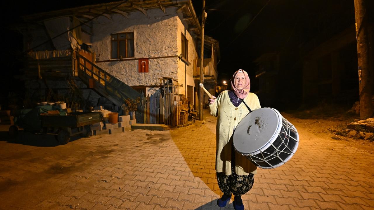 Sahur vakti yollara düşen 3 çocuk annesi Ayşe Alkan da ramazan süresince her gece Kuzköy sokaklarında dolaşarak köylüleri sahura kaldırıyor.
