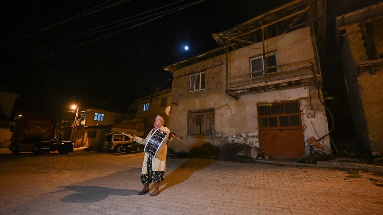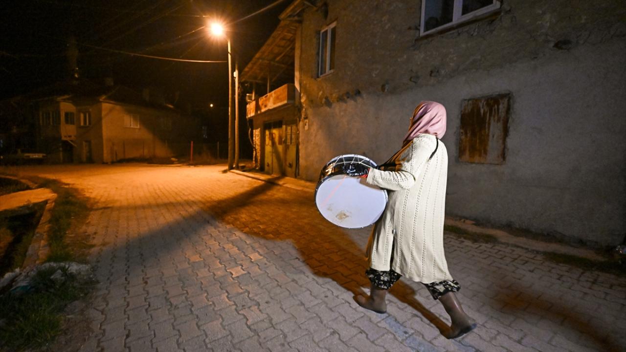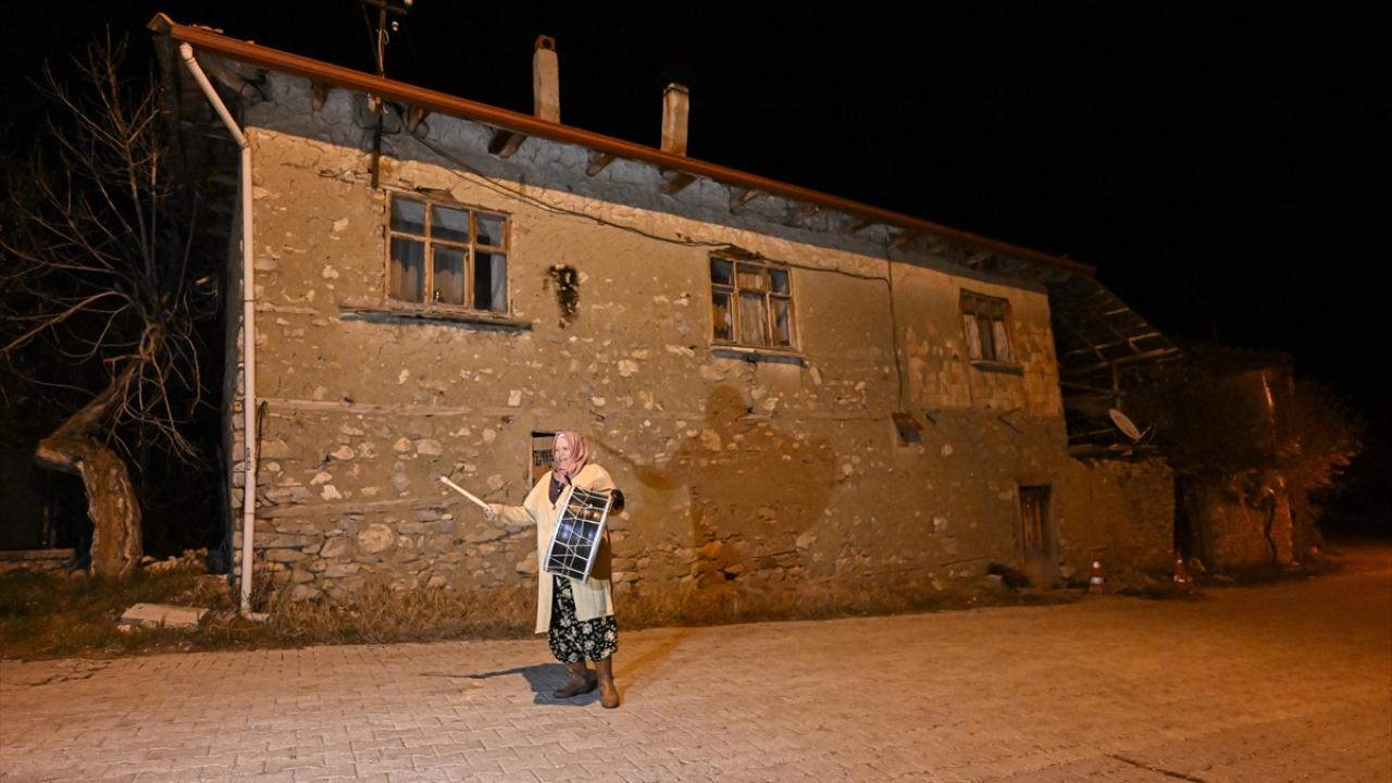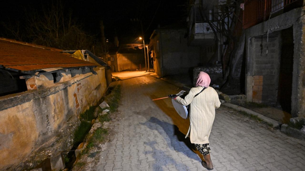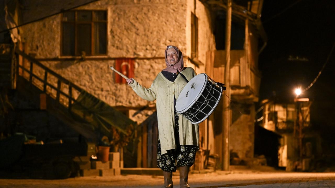 Sahur vakti yollara düşen 3 çocuk annesi Ayşe Alkan da ramazan süresince her gece Kuzköy sokaklarında dolaşarak köylüleri sahura kaldırıyor.
