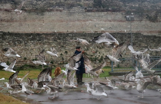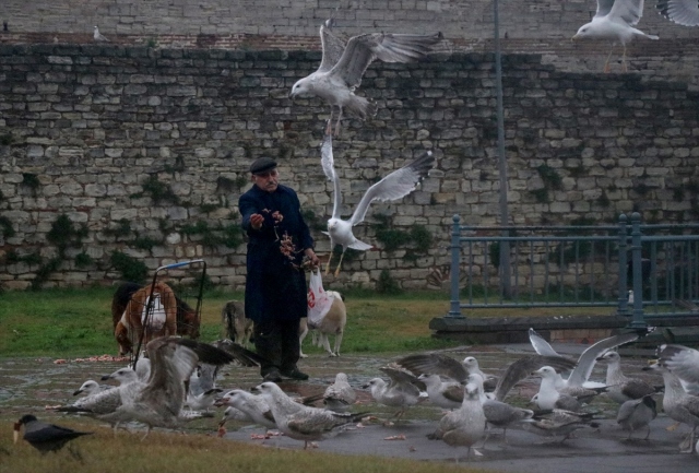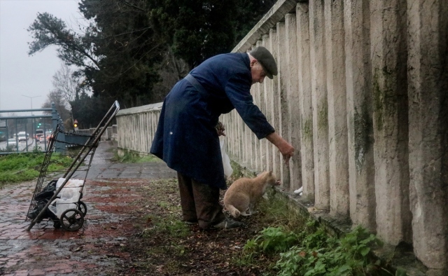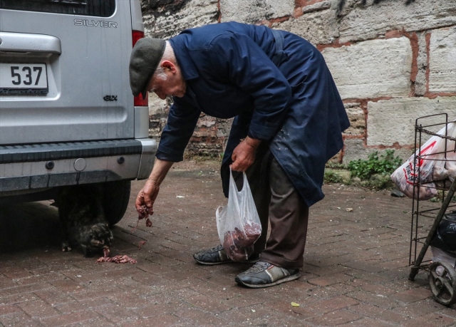 Zeytinburnu'nda 30 yıldır her sabah kar, kış demeden kasaplardan aldığı etleri doğrayarak martı, kedi ve köpeklere kadar sokakta yaşayan hayvan dostlarını elleriyle besleyen 88 yaşındaki Celal amca, mahallenin sokak, cadde başlarında onu mama sepetiyle görüp yanına gelen canları sevindirerek sevap kazanıyor.