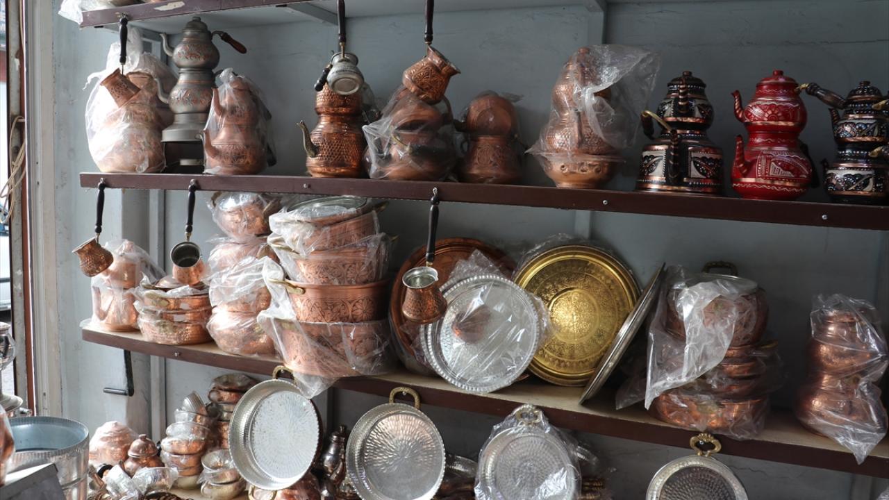 Dükkanda bakır demlik, tepsi, cezve ve bardak gibi ürünleri parlatan Mahmut Özeski, kalaycılığa bir arkadaşının vesilesiyle başladığını söyledi.