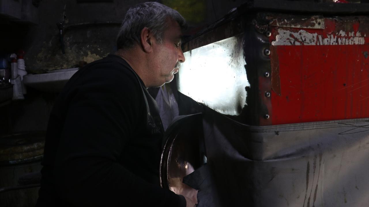Mahmut usta 41 yıllık mesleğini bırakıp "unutulmasın" diye kalaycılığa başladı