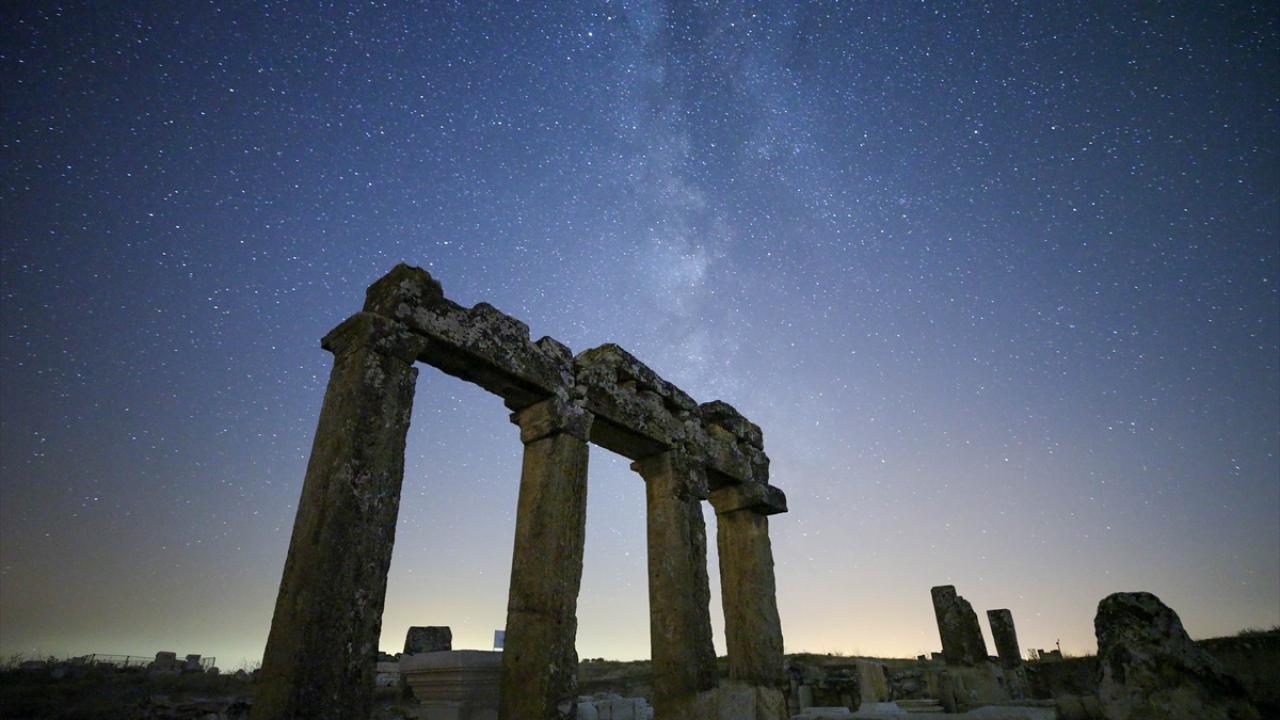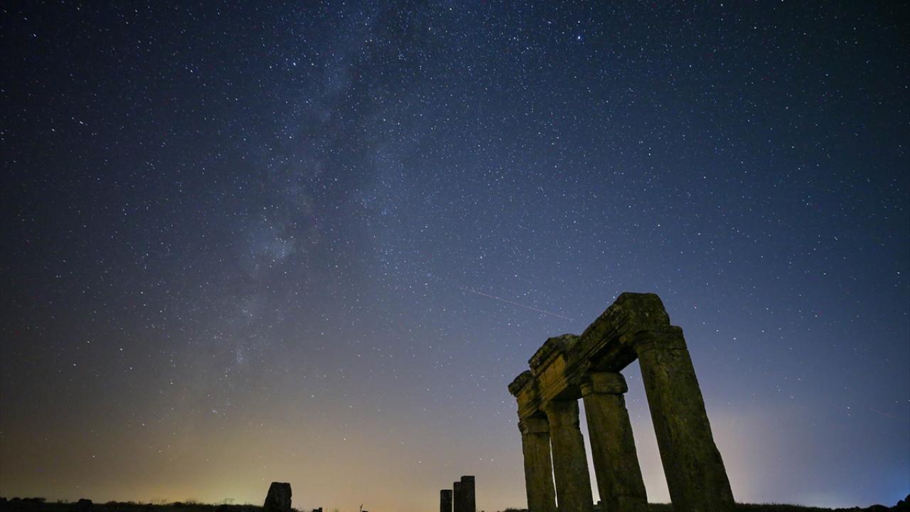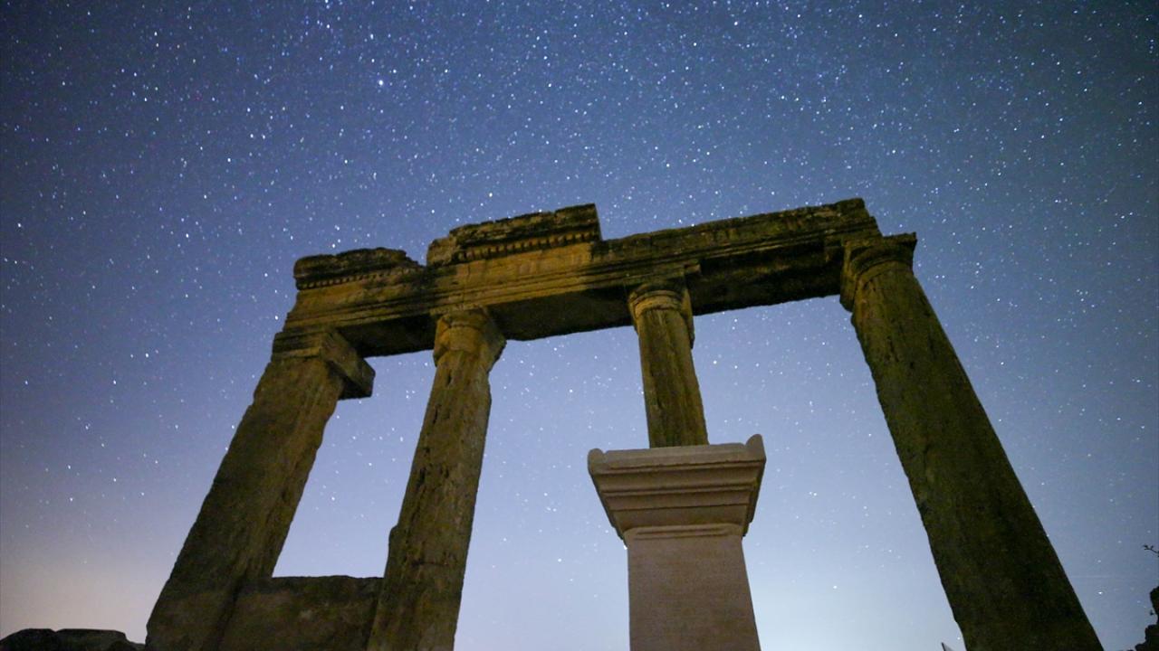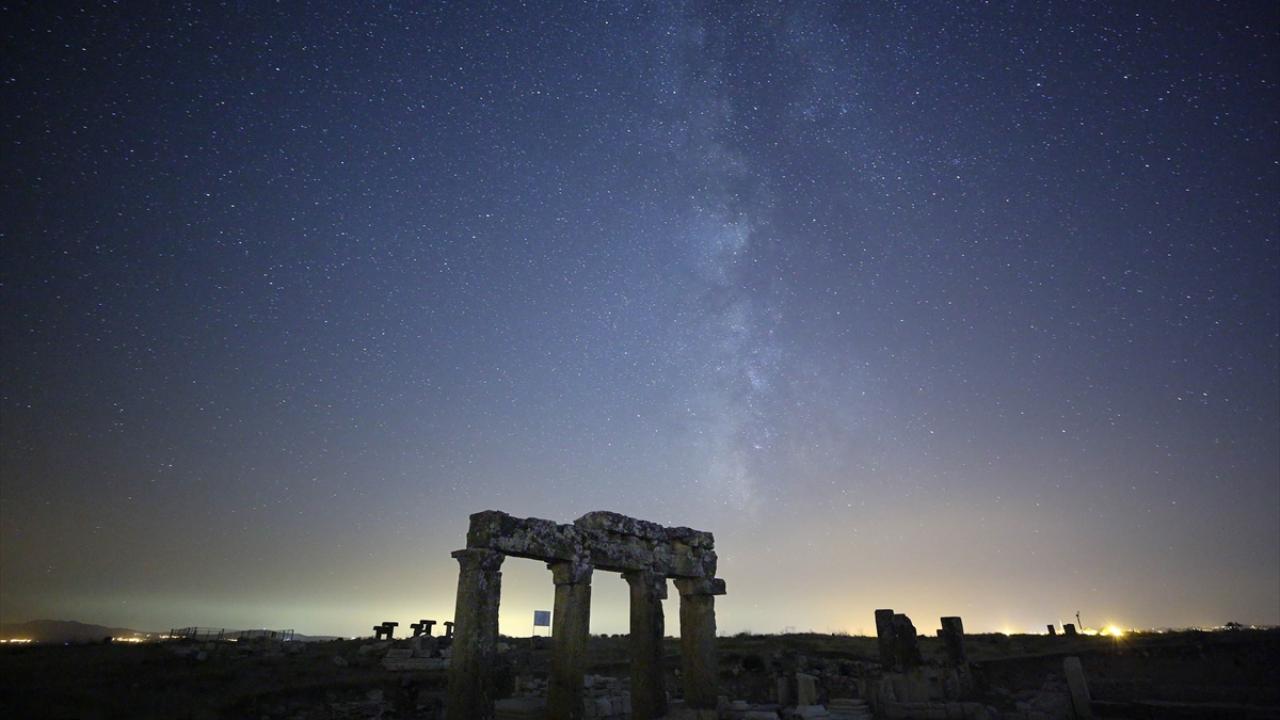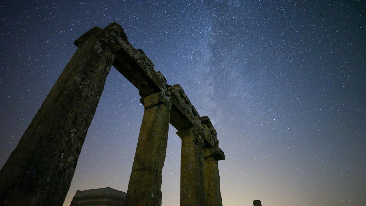 Tarihi süreç içerisinde Bergama Krallığı'na ve Roma İmparatorluğu'na bağlanan Blaundos Antik Kenti'ndeki yapılar ve yıldızlar uzun pozlama tekniğiyle görüntülendi.