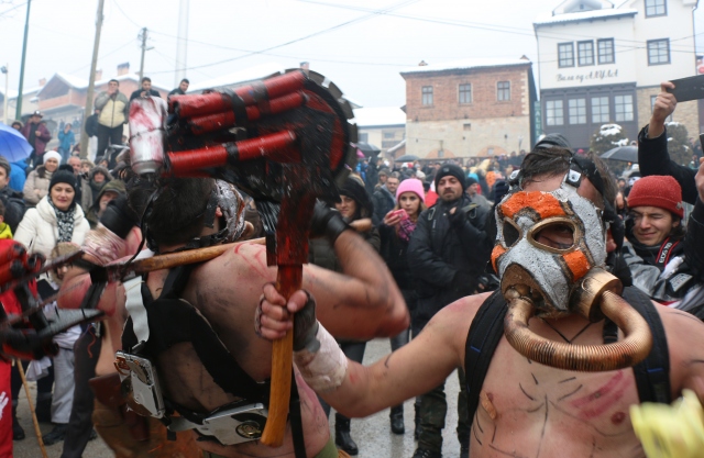 Makedonya'nın en eski karnavalı olarak bilinen Vençani karnavalı nedeniyle halk rengarenk maske ve kostümlerle sokağa çıktı.