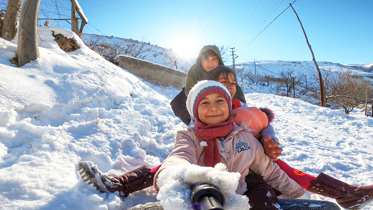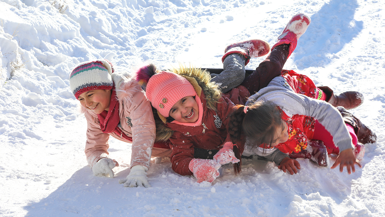 Çocuklardan Hatice Akbaş, arkadaşlarıyla bir araya gelerek evlerinden getirdikleri malzemelerle kaydıklarını ve karın keyfini çıkardıklarını söyledi.