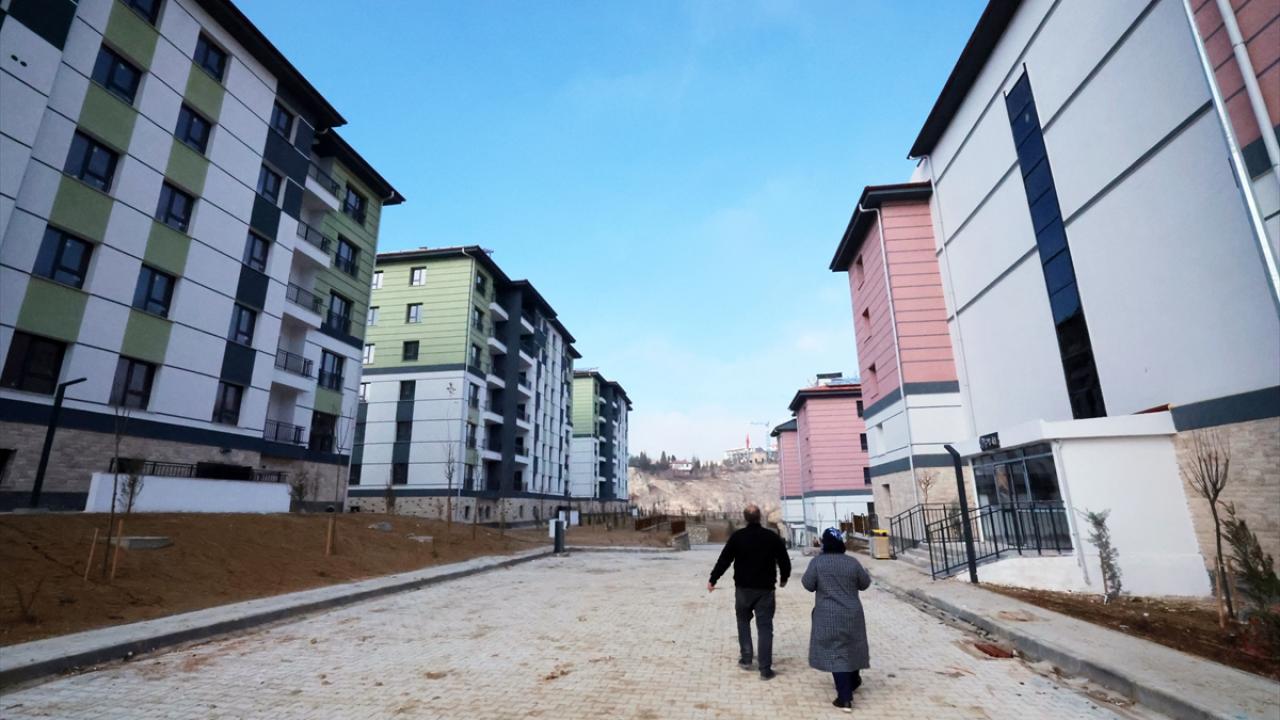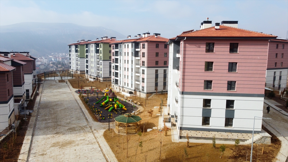 Kahramanmaraş merkezli 6 Şubat 2023`te meydana gelen depremlerden etkilenen Darende ilçesine bağılı Hacıderviş Mahallesi`ndeki konutların teslimatı sürüyor.