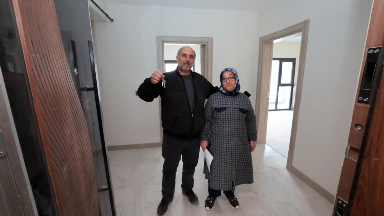 Anahtarlarını teslim alan hak sahipleri, yeni evlerine kavuşmanın mutluluğunu yaşıyor.