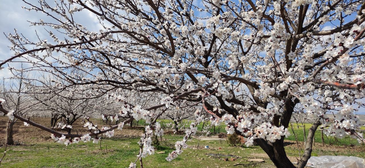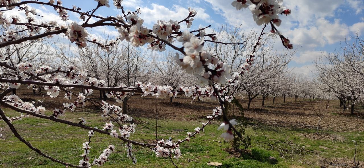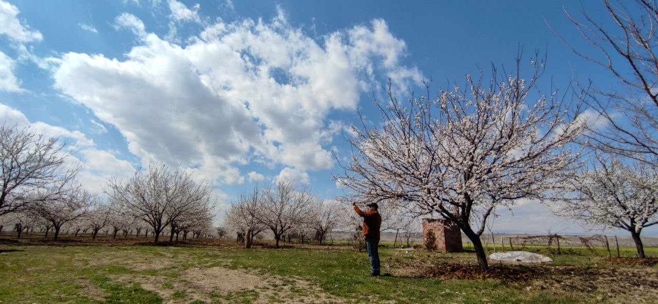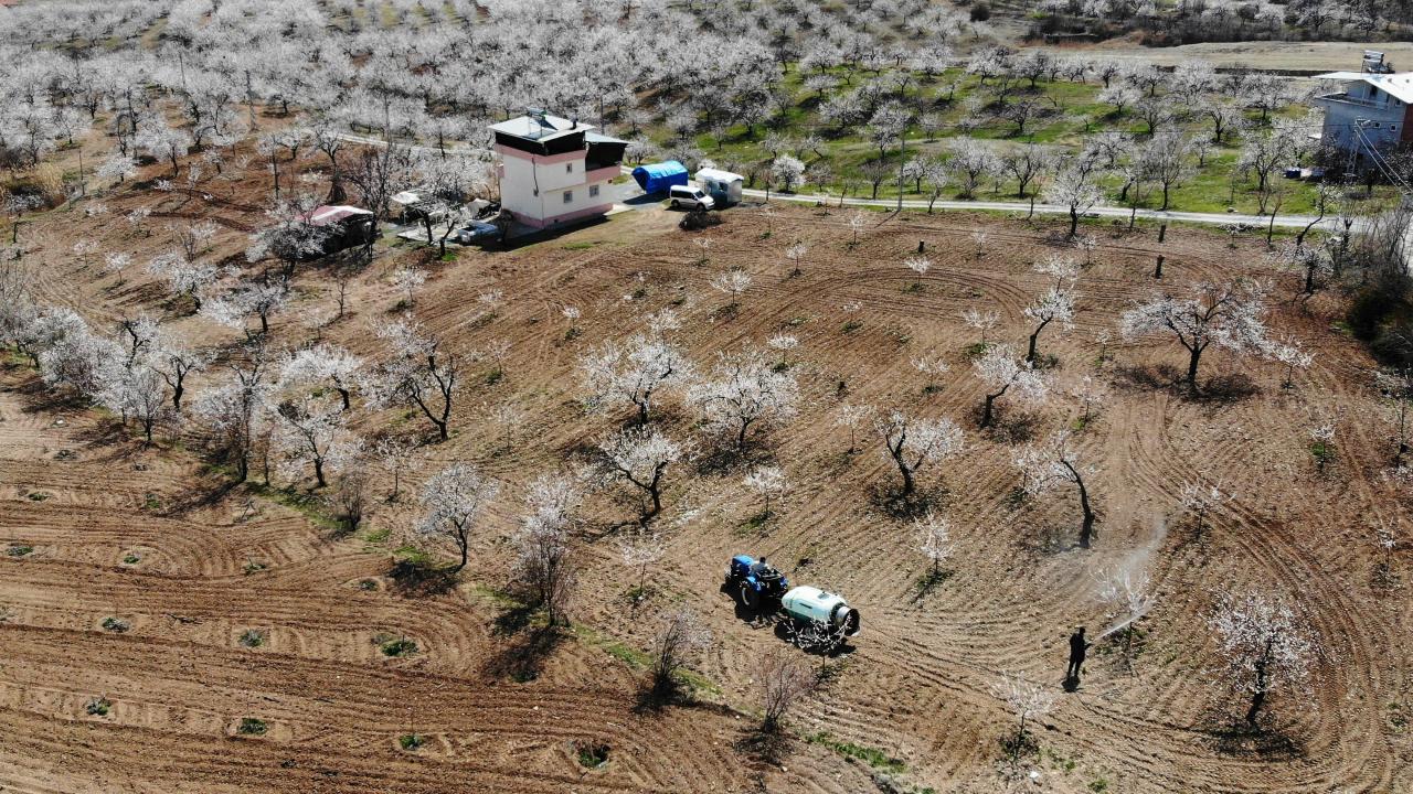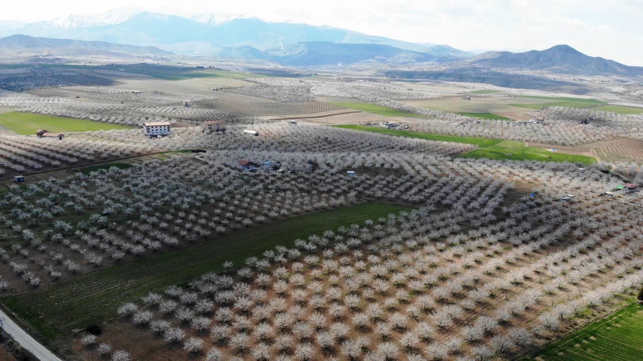 Beyaza bürünen kayısı bahçeleri ortaya eşsiz bir manzara çıkarırken, çiftçiler de bu dönemde yoğun bir mesai harcıyor.