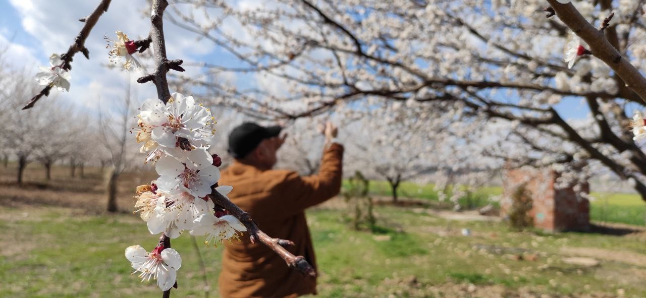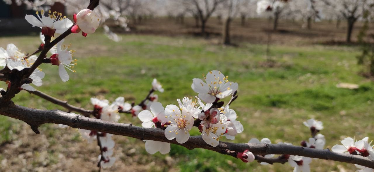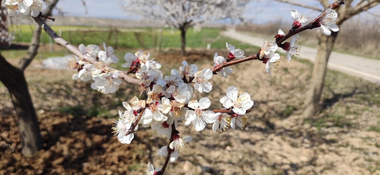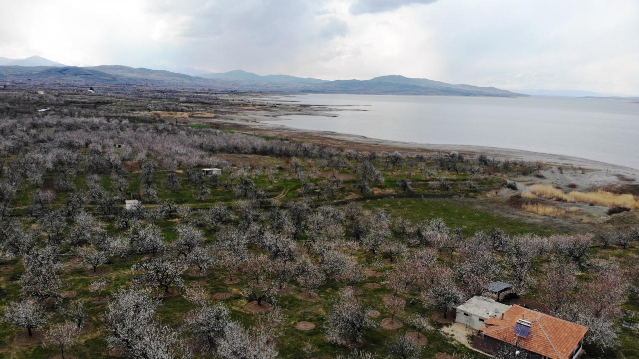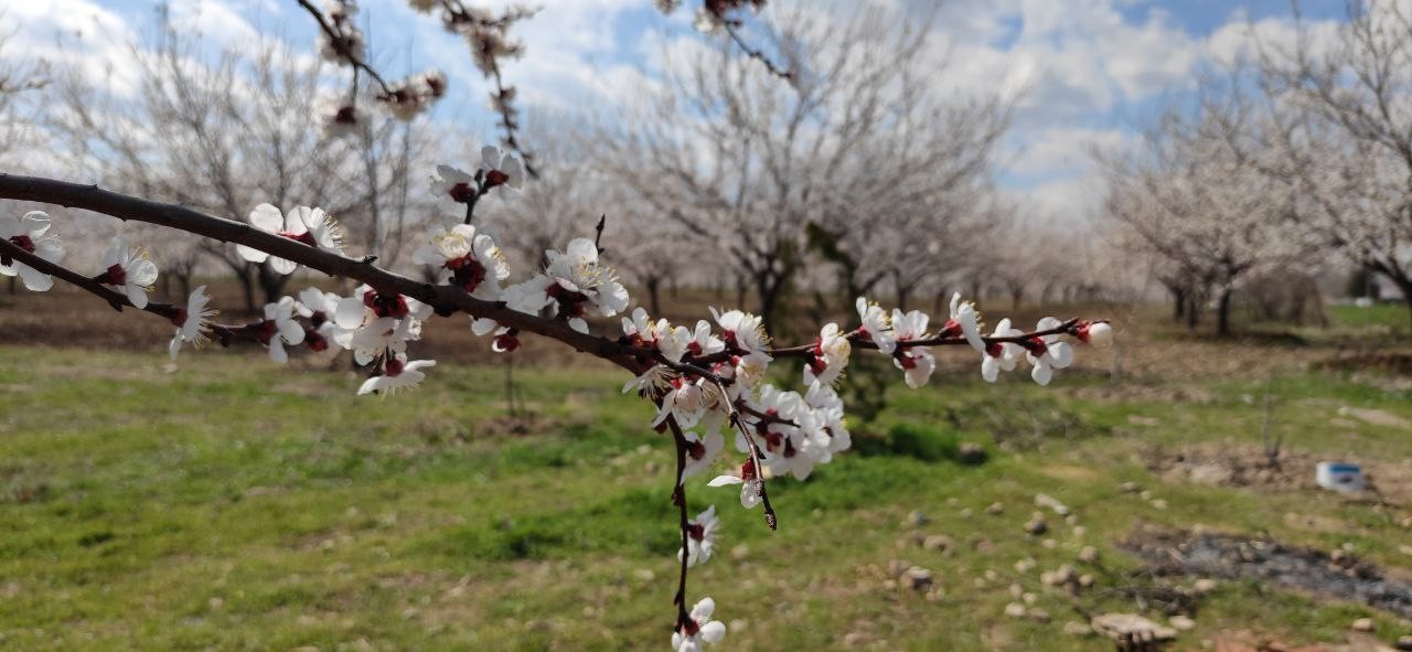 Beyaza bürünen kayısı bahçeleri ortaya eşsiz bir manzara çıkarırken, çiftçiler de bu dönemde yoğun bir mesai harcıyor.