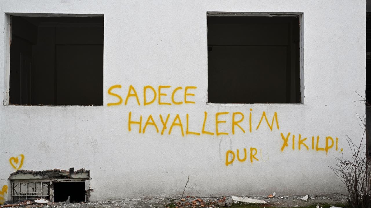 Bazı duvarlarda, "6 Şubat`ı asla unutmayız Malatyam", "Döneceğiz elbet, Malatya tek sevdamız", bazılarında "Sadece hayallerim yıkıldı", "Yaşamak direnmektir Malatyalım" gibi yazılar bulunuyor.