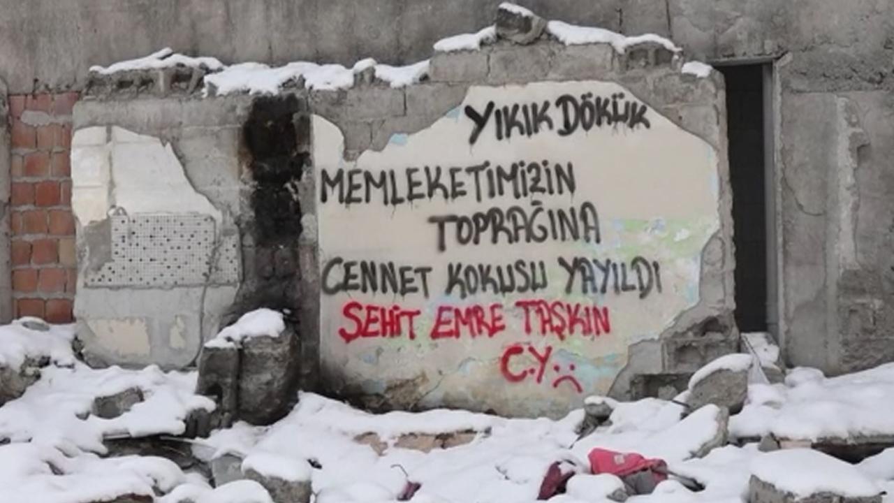 23 Aralık 2023`te şehit olan asker için bir duvar yazısında, "Yıkık dökük memleketimizin toprağına şehit kokusu yayıldı. Şehit Emre Taşkın" ifadesi yer aldı.