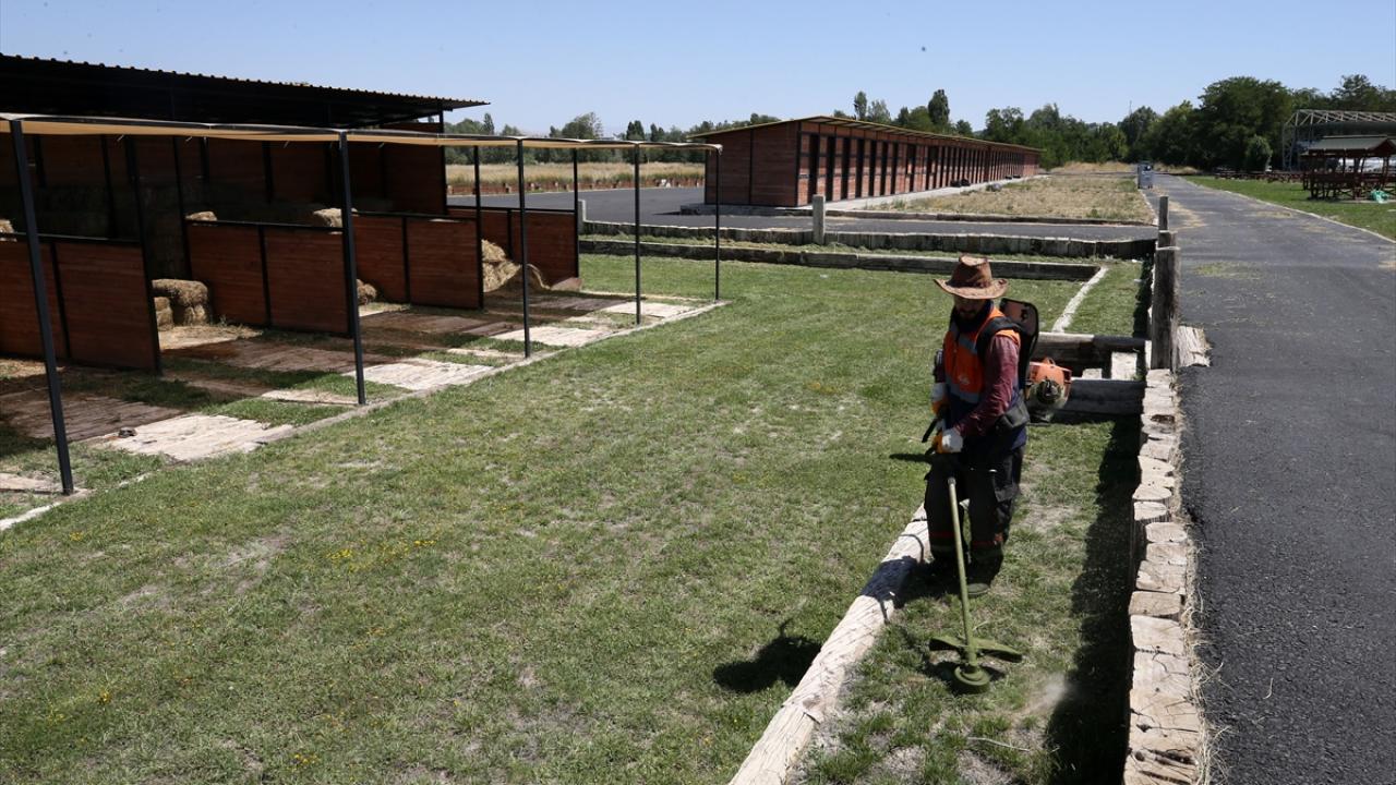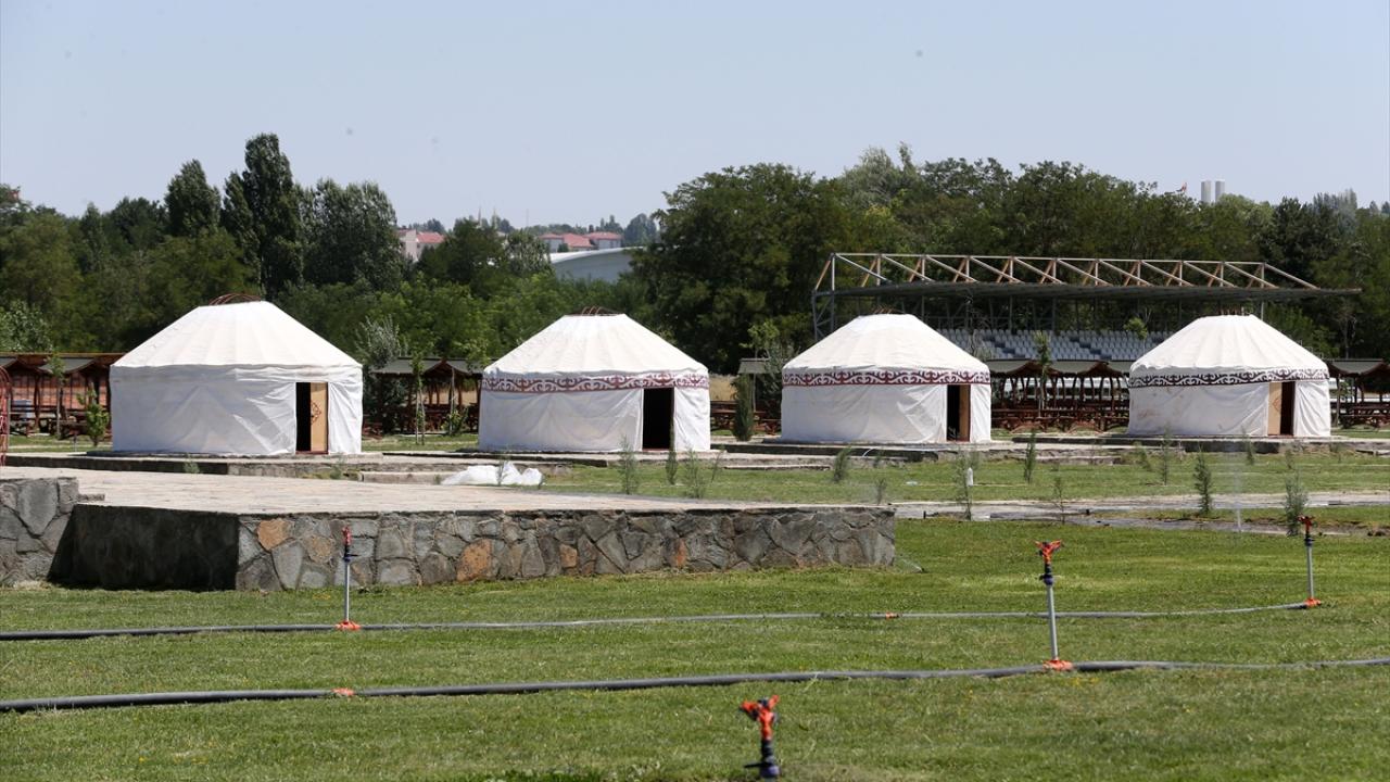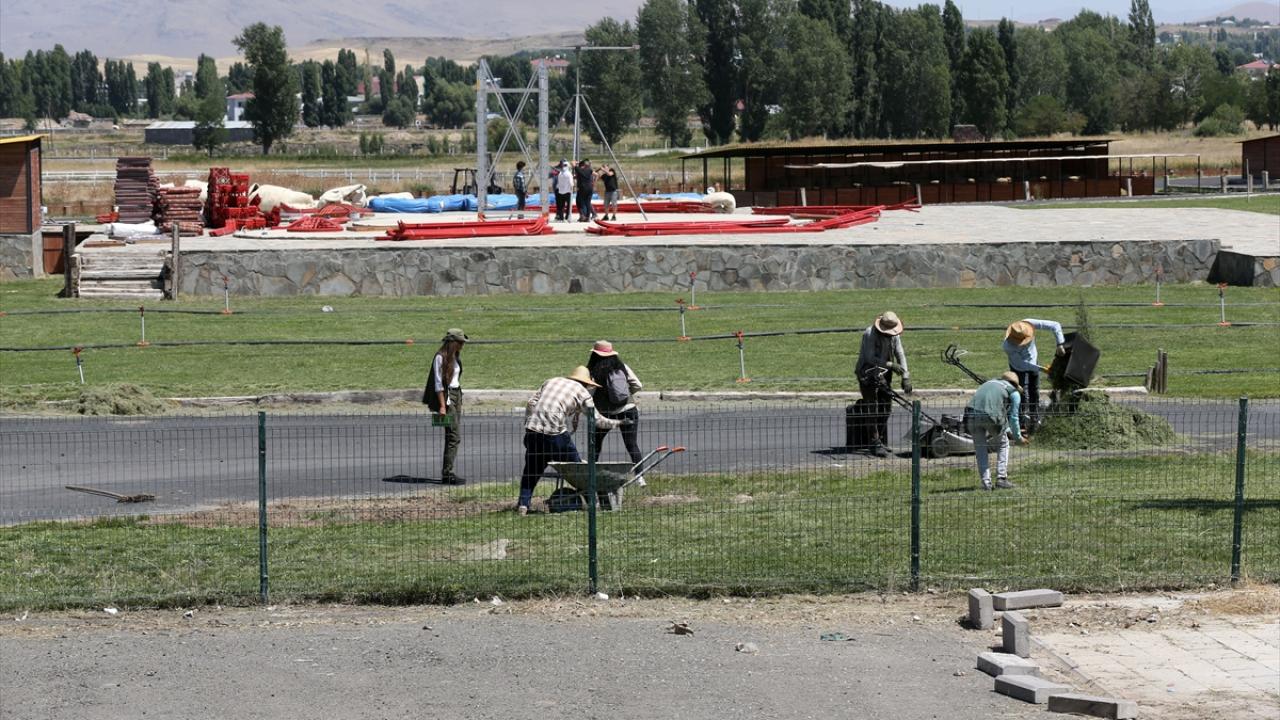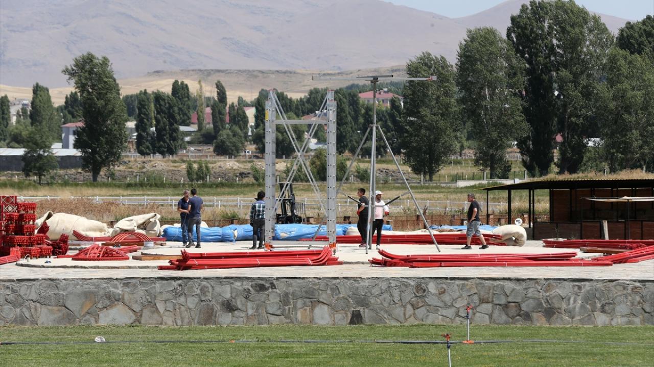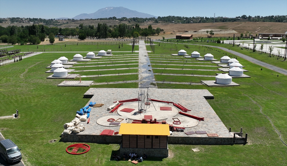 Malazgirt`te binlerce kişinin katılımıyla 24-26 Ağustos`ta gerçekleştirilecek kutlamaların yapılacağı alanda 16 oba çadırı kuran ekipler, büyük bir han otağında çalışmalarını sürdürüyor.