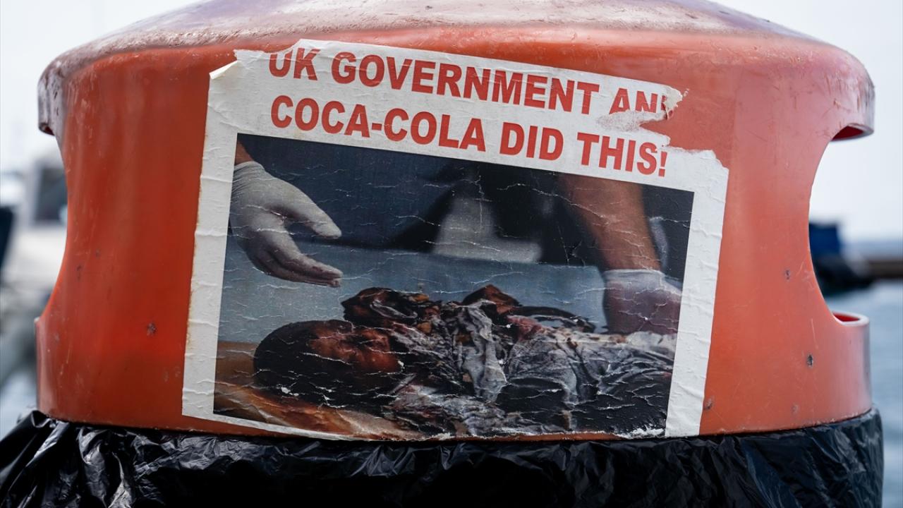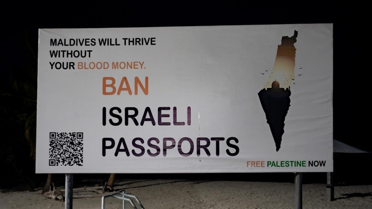 Sahile yerleştirilen pankartlarla İsrail Pasaportlarının ülkeye girişinin yasaklanması talep edildi.