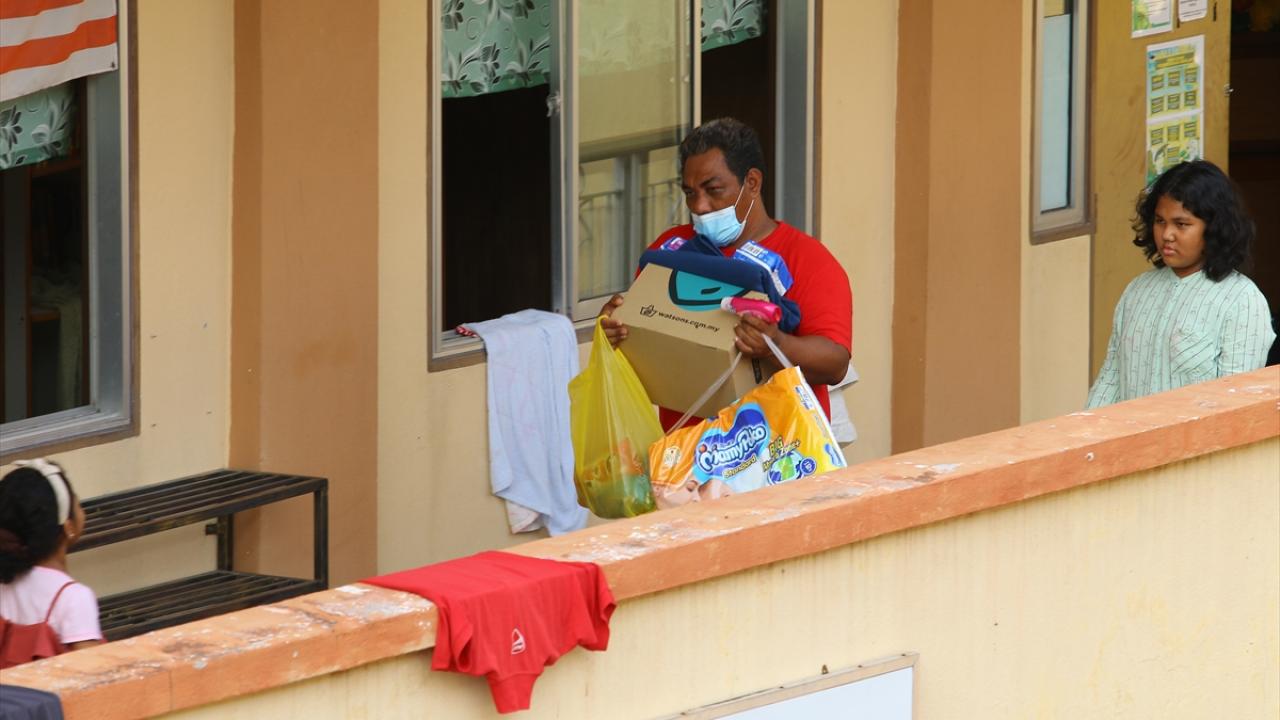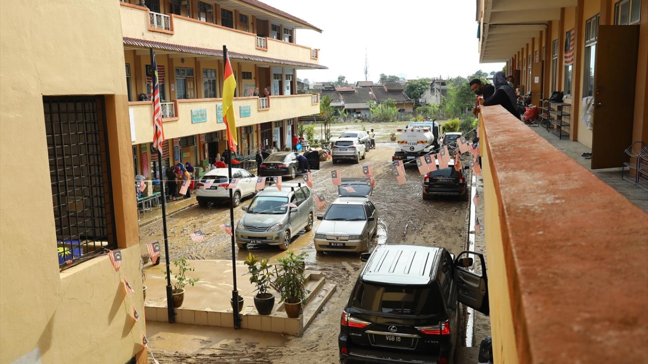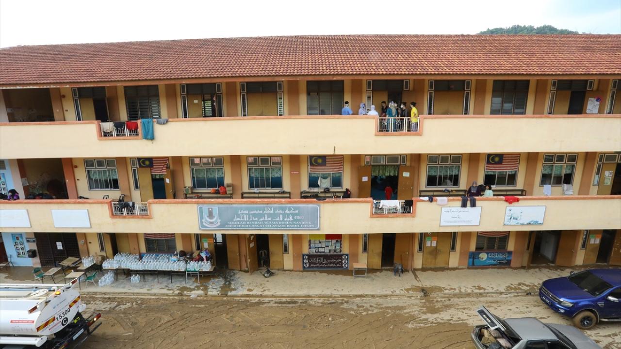 Selangor eyaletinin Hulu Langat bölgesinde bulunan Nanding köyündeki Sekolah Rendah Agama`da selzedeler, geçici barınaklara tahliye ediliyor.