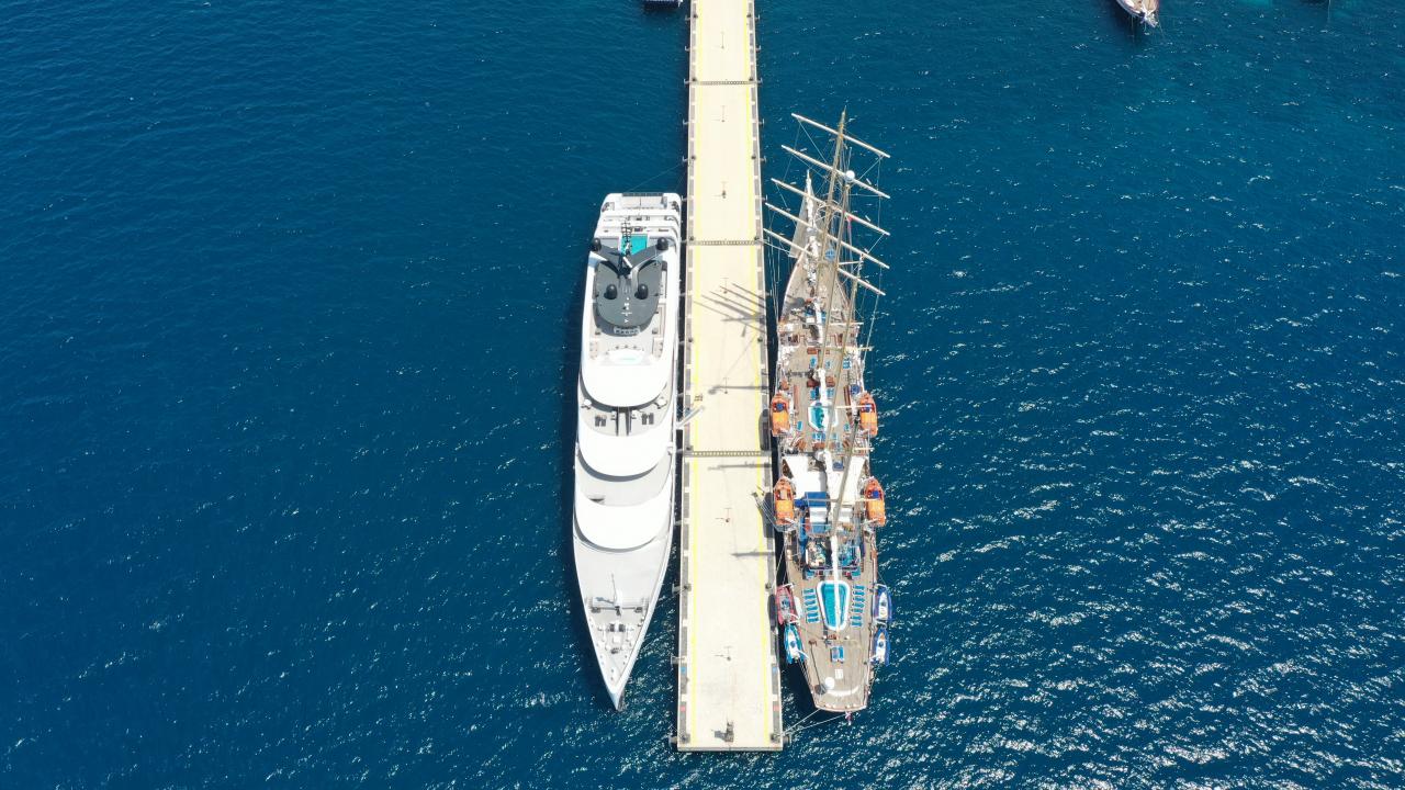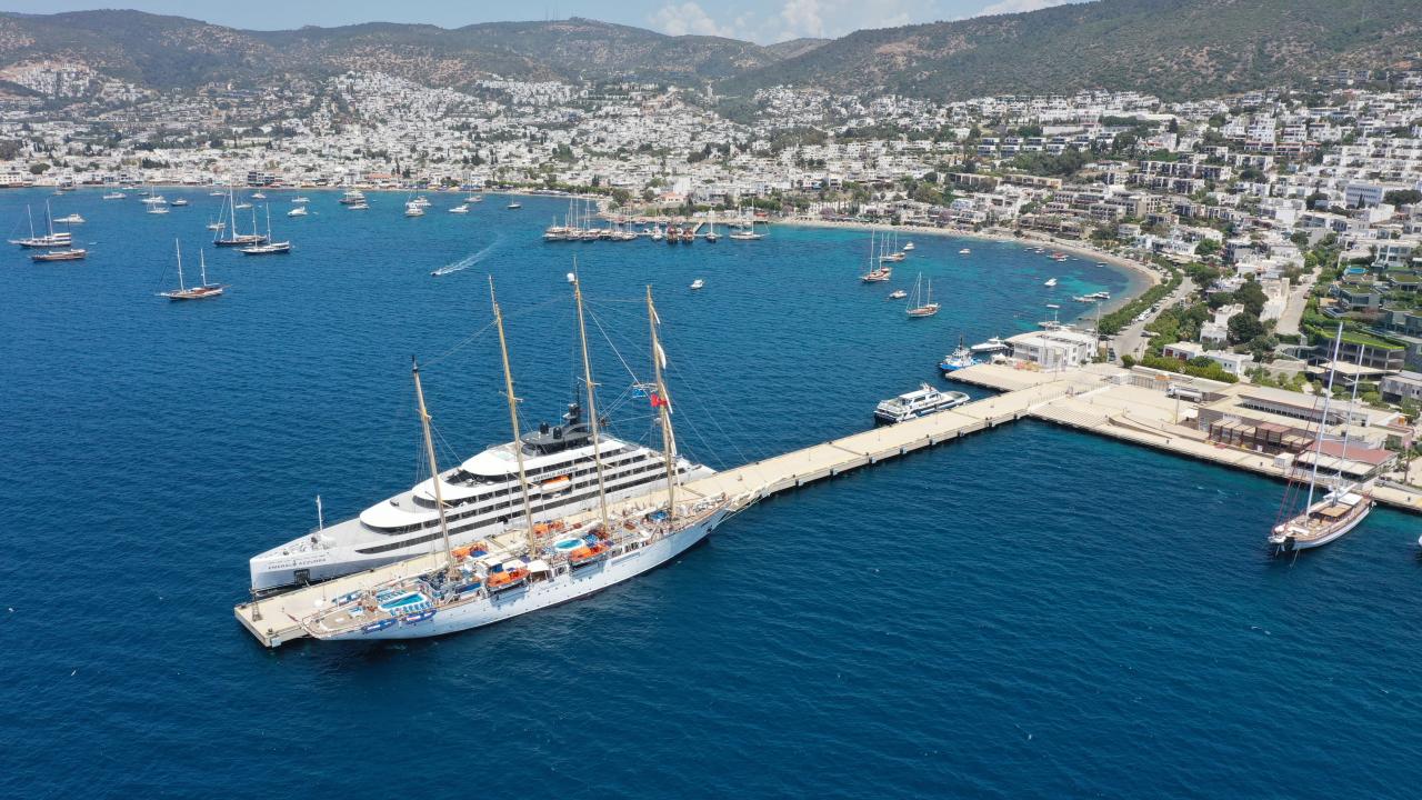 Yine iskeleye yanaştırılan Malta bayraklı 72 metrelik yelkenli kruvaziyerde de ABD, İngiliz ve Alman ağırlıklı 118 yolcu, 69 kişilik mürettebat yer alıyor.