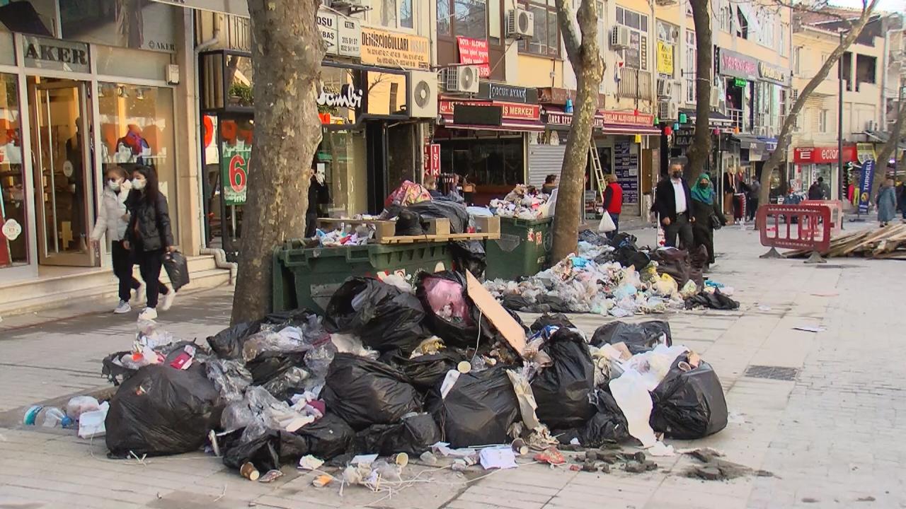 Grev yapanlar arasında temizlik işçilerinin de bulunması nedeniyle ilçede çöpler toplanmıyor.
