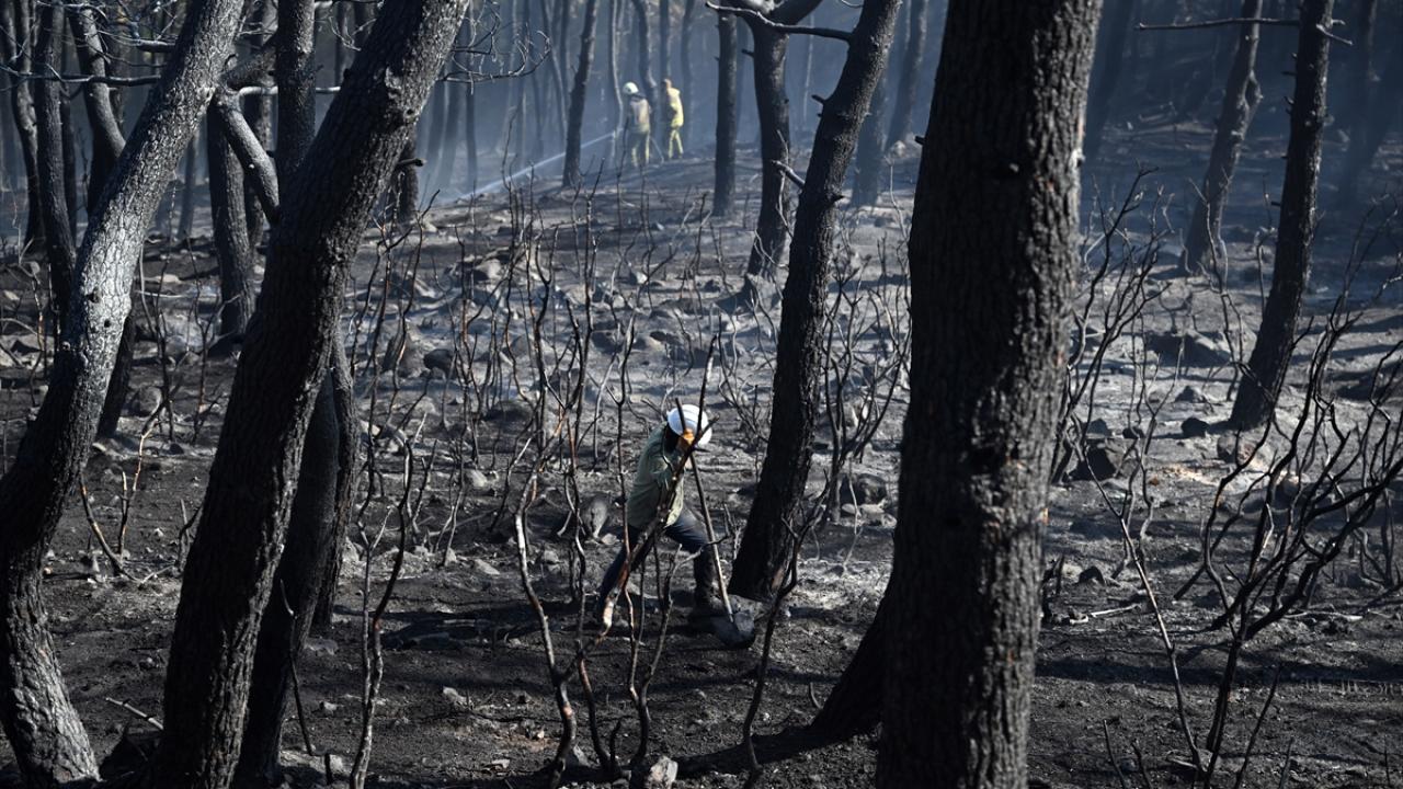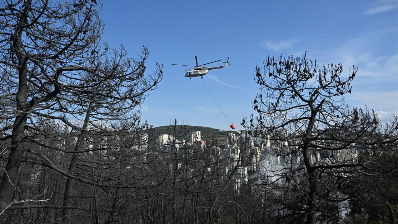 Yangın, ekiplerin yoğun çalışmasının ardından kontrol altına alınırken, helikopter desteğiyle bölgede soğutma çalışması yapılıyor.