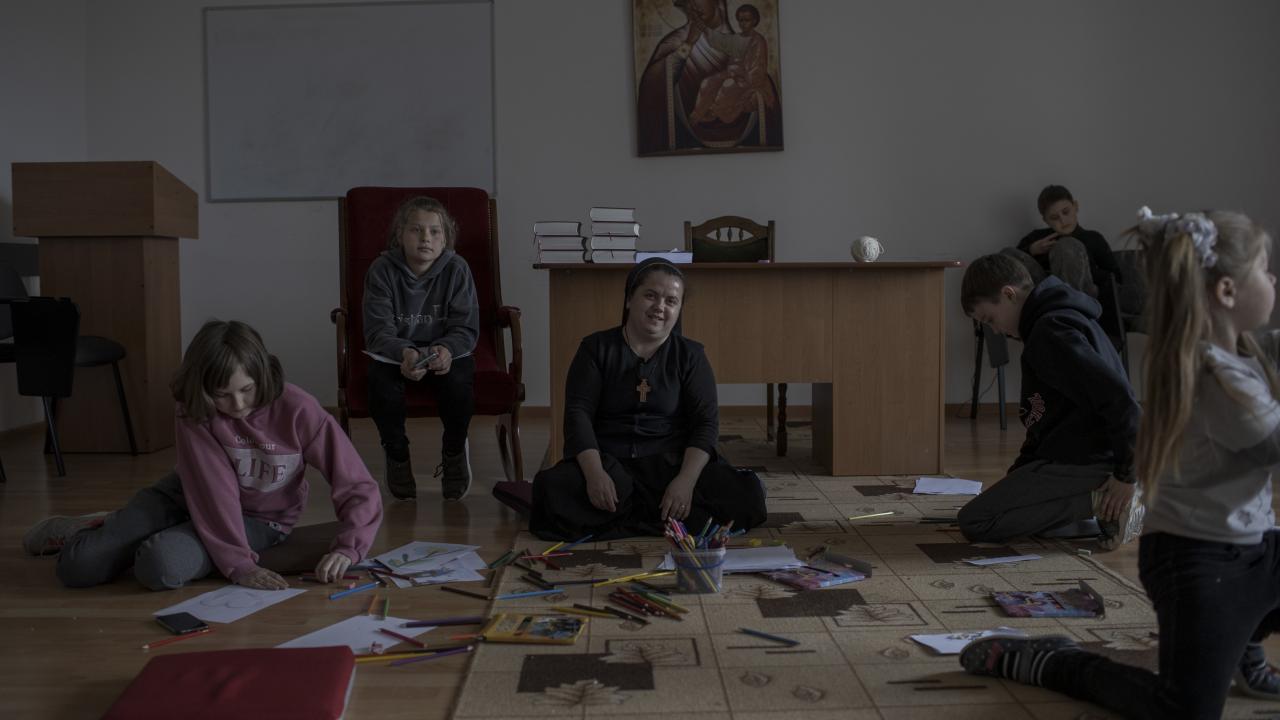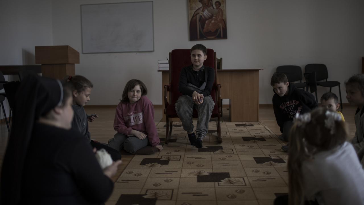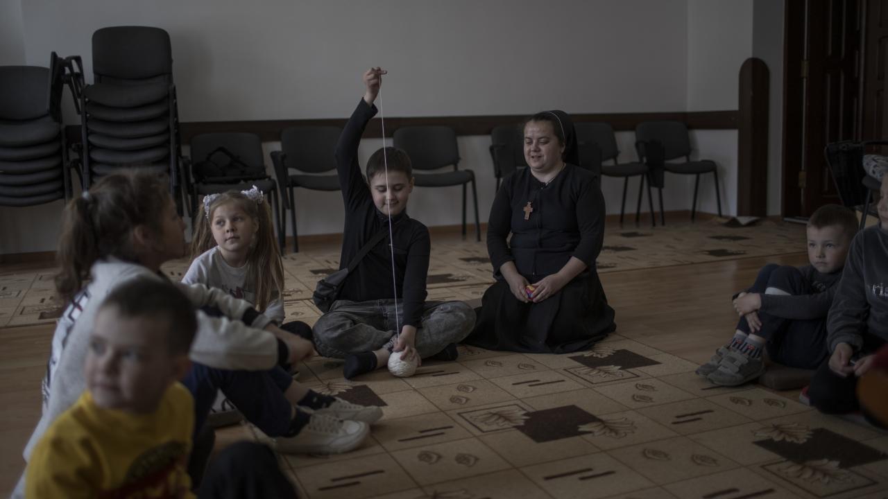 Rahibeler, savaşı en ağır şekilde yaşayan çocuklar ile oyunlar oynayarak, yaşadıkları travmaları atlatmaları için ellerinden gelen tüm çabayı gösteriyorlar.