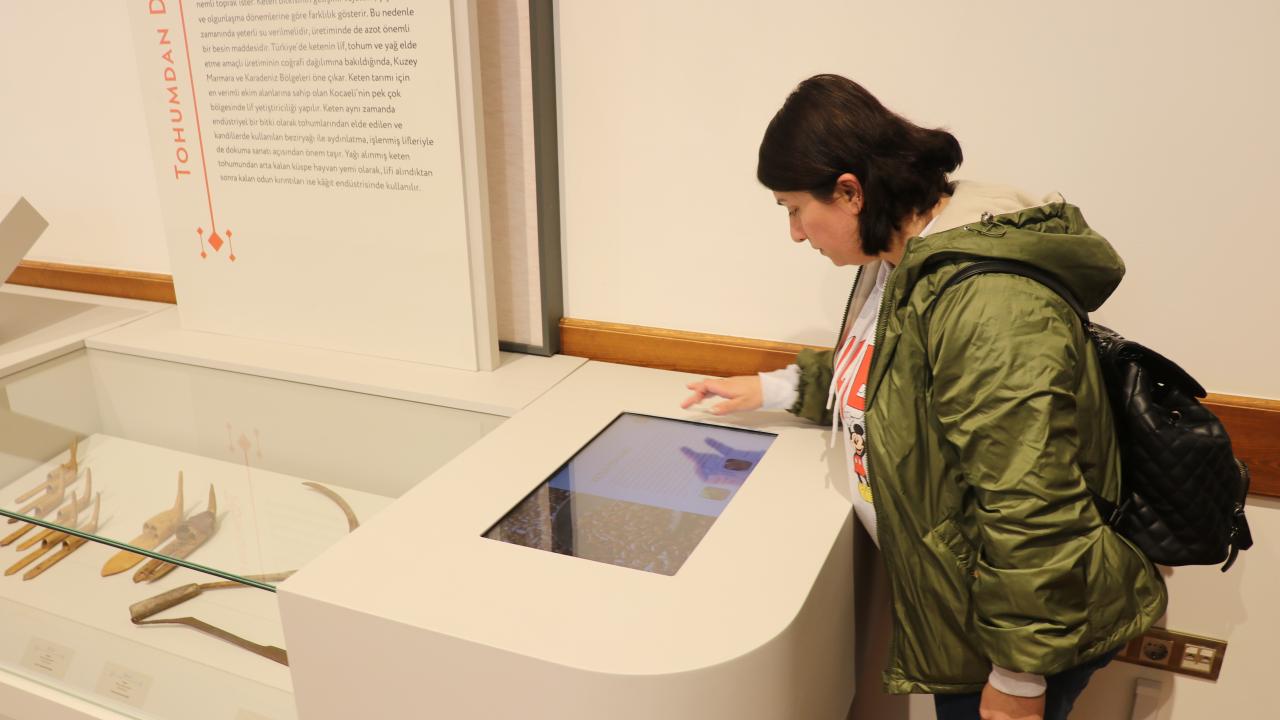 Ziyaretçilerin müzedeki sözlü anlatı ekranlarında Manav Türklerine ait derlenen türkü, masal ve mani örneklerine ulaşabildiklerini anlatarak, "Yine dijital ekranlarda günlük kıyafeti, kaftanı ve benzeri kıyafetleri ziyaretçilerimize sunuyoruz. Ziyaretçi beğendiği motifleri ekrana yerleştirip hikayesini öğrenmiş oluyor. Kilim dokumayla ilgili yine dijital bir ekranımız var. Bu dijital ekranda da Kocaeli`nin kilim motiflerinin öyküleri, renkleri, desenleri ve nasıl dokunacağıyla ilgili bilgileri de ziyaretçilerimize aktarıyoruz. İnteraktif alanımızda ise ziyaretçilerle kilim dokuyoruz." ifadelerini kullandı.