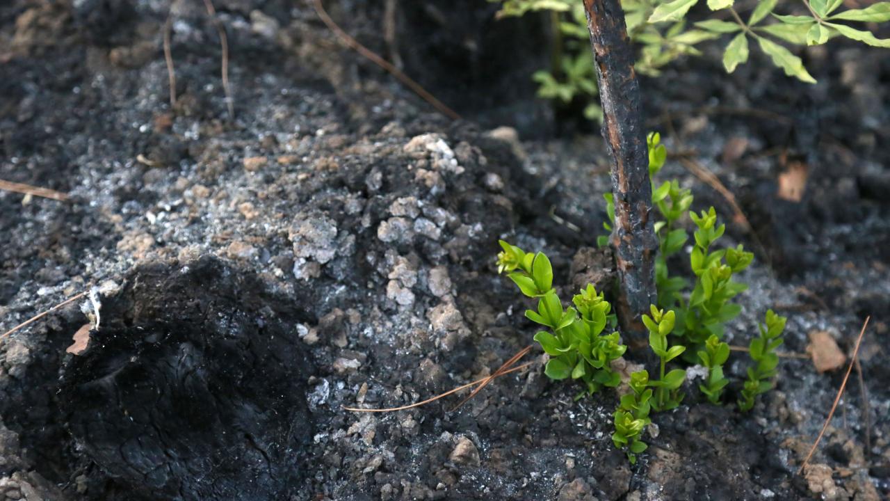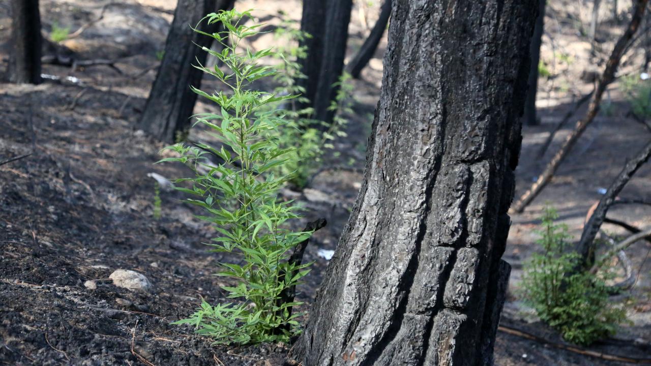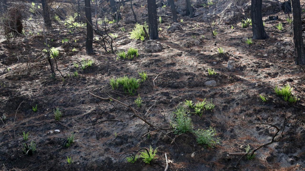 Antalya'nın Manavgat ilçesinde 10 gün süren orman yangınından 1,5 ay sonra Akdeniz'e özgü maki türleri, küllerin arasından filizlenerek yeniden doğuşun simgeleri oldu. Boyları 1 metreyi aşan filizler arasında defne, çoban değneği, hanımeli, hayıt, yaban inciri, çınar, asma da bulunuyor.