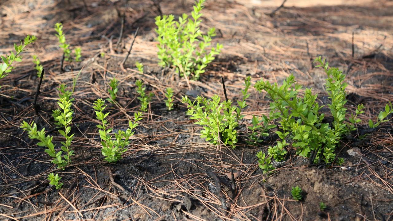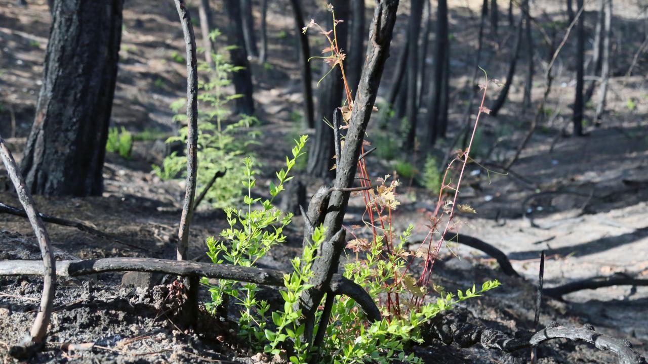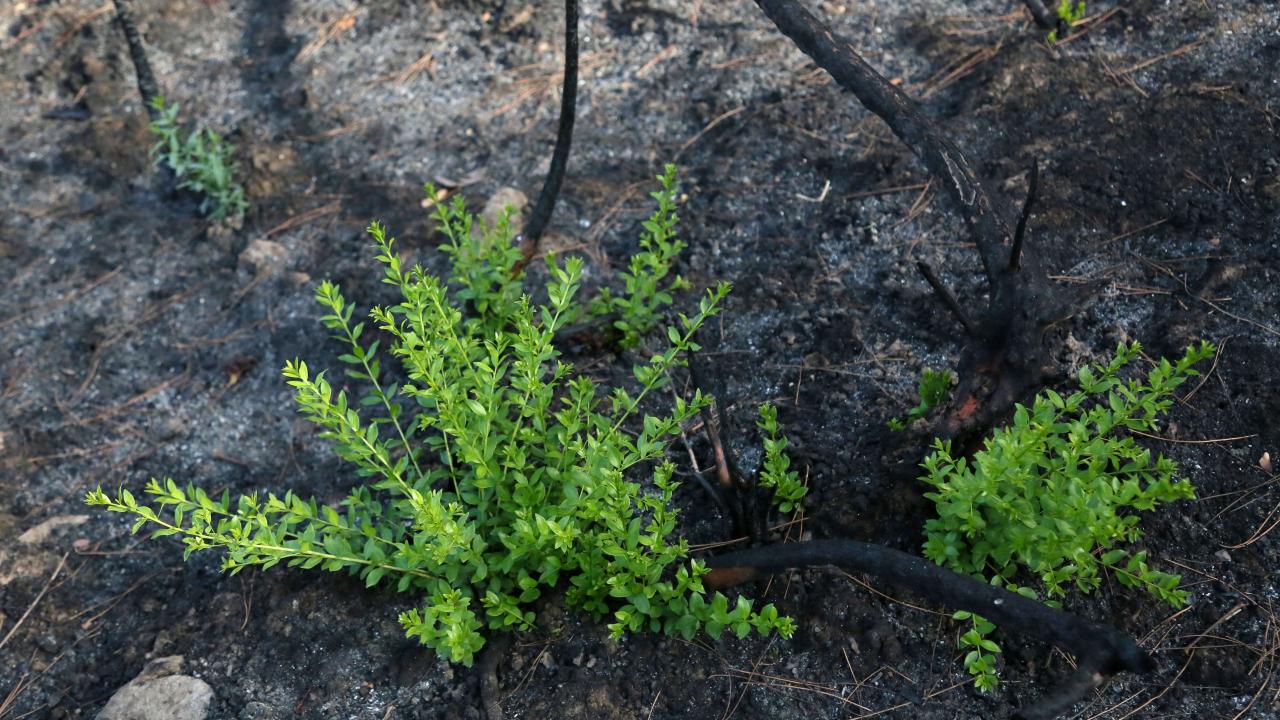 Yangından 1,5 ay sonra ise başta maki türleri olmak üzere birçok bitki ve ağaç türüne ait filizler küllerin arasından çıkarak yeniden doğuşun simgesi oldu.