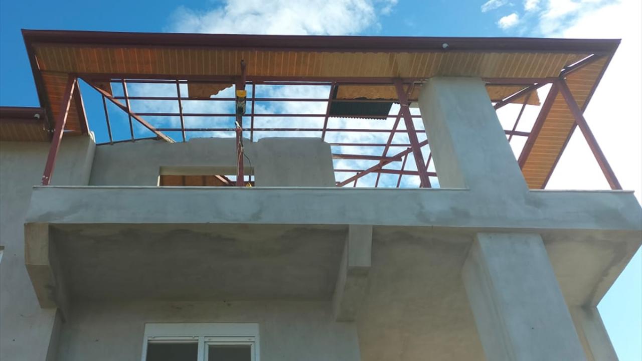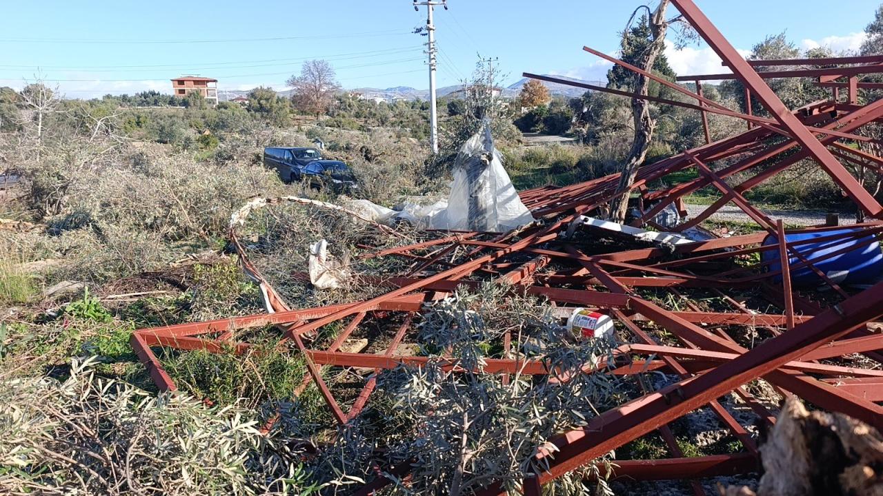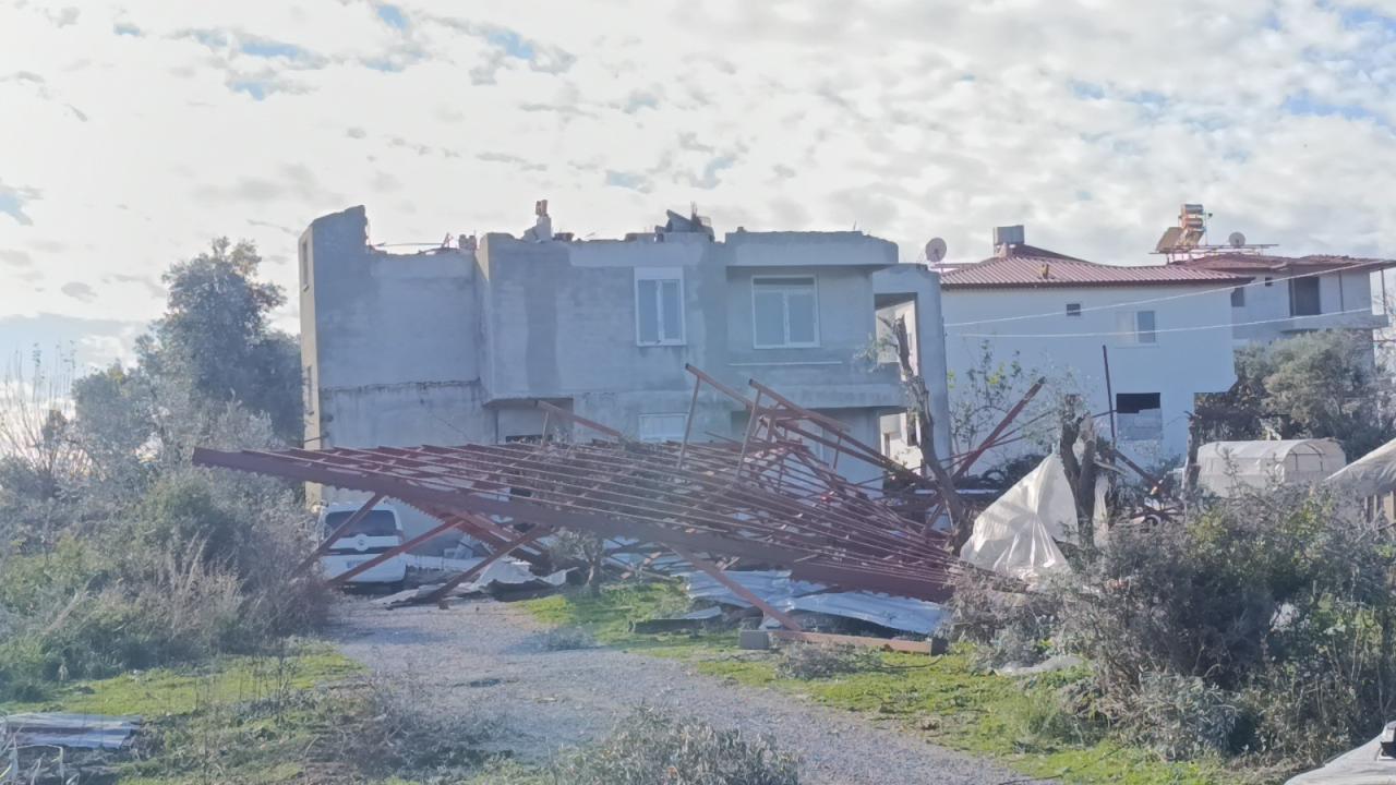 İlçede dün etkili olan hortum nedeniyle seralar zarar görmüş, bazı ev ve ağılların da çatısı uçmuştu.