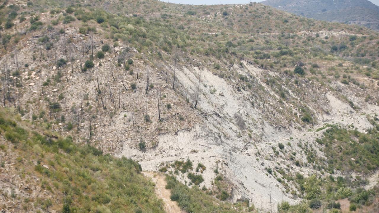 Antalya'nın Manavgat ilçesinde 6 kişinin hayatını kaybettiği, yaklaşık 60 bin hektar orman alanının zarar gördüğü yangın felaketinin üçüncü yılında, yanan alanların yeniden yeşile bürünmeye başlaması havadan görüntülendi.
