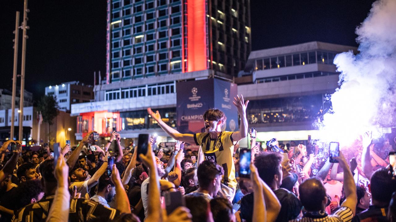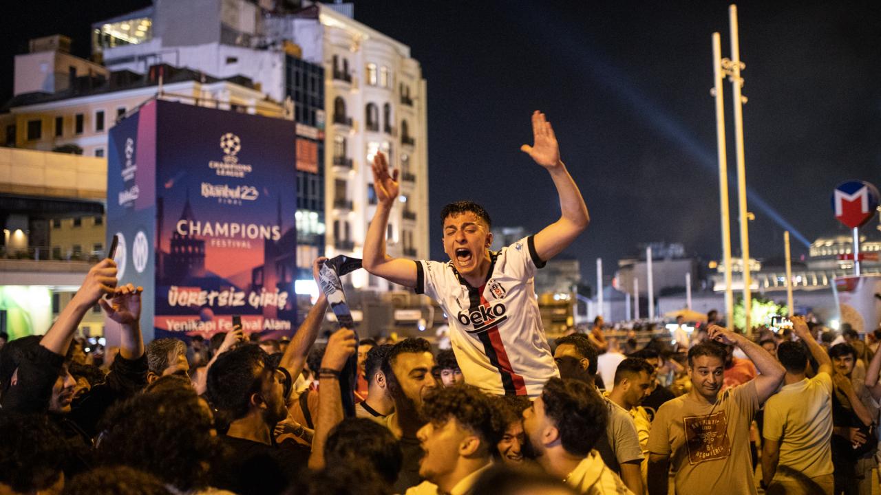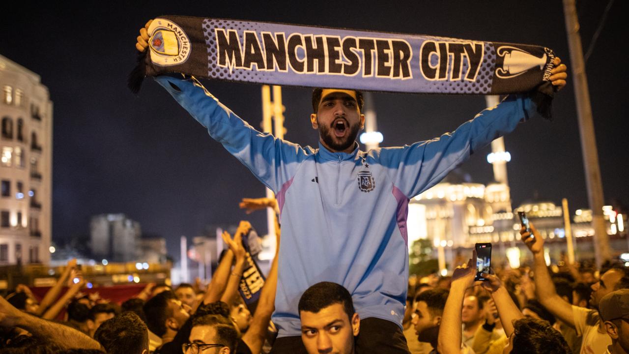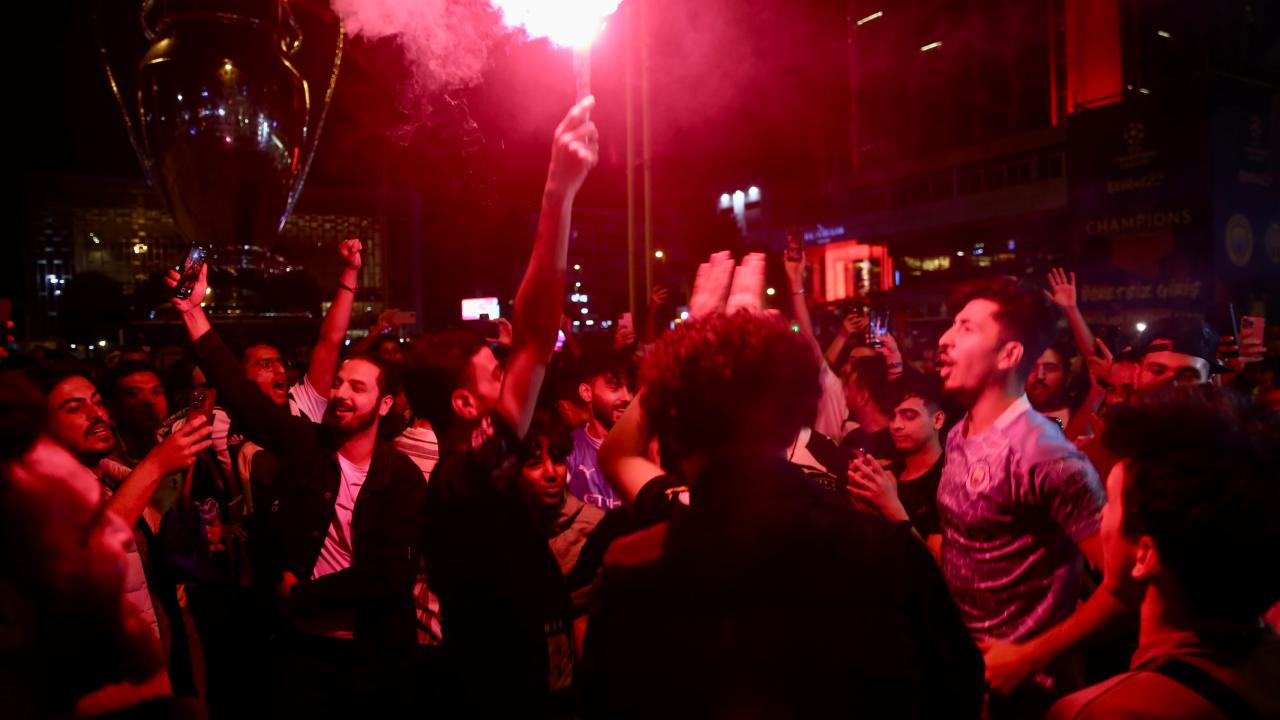 UEFA Şampiyonlar Ligi finalinde İtalya ekibi Inter'i 1-0 mağlup ederek kupanın sahibi olan İngiltere temsilcisi Manchester City'yi destekleyen futbolseverler, Taksim Meydanı'nda şampiyonluğu kutladı.