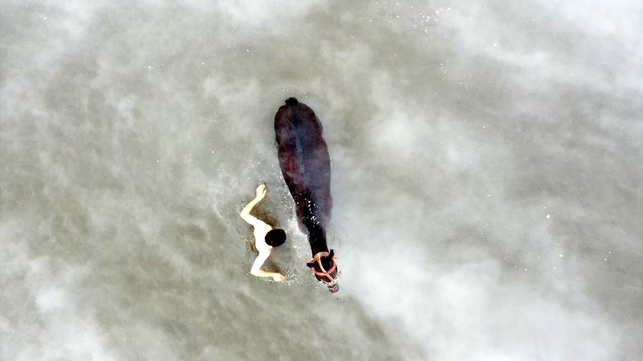 Fotoğraf tutkunları da hayvanların yıkanmasını ve dondurucu soğuğa aldırmadan manda ve atların üzerinden takla atarak suya dalış yapan gençleri görüntülemek için yılın bu dönemlerinde köye akın ediyor.