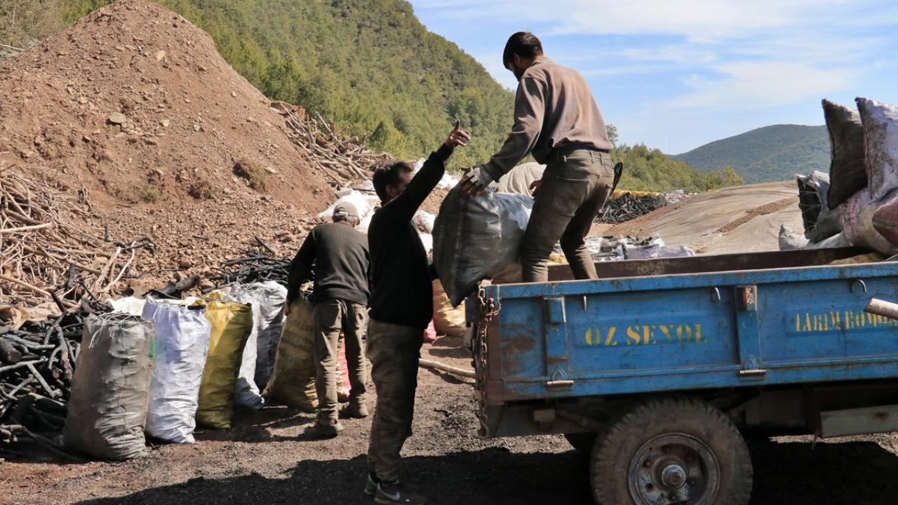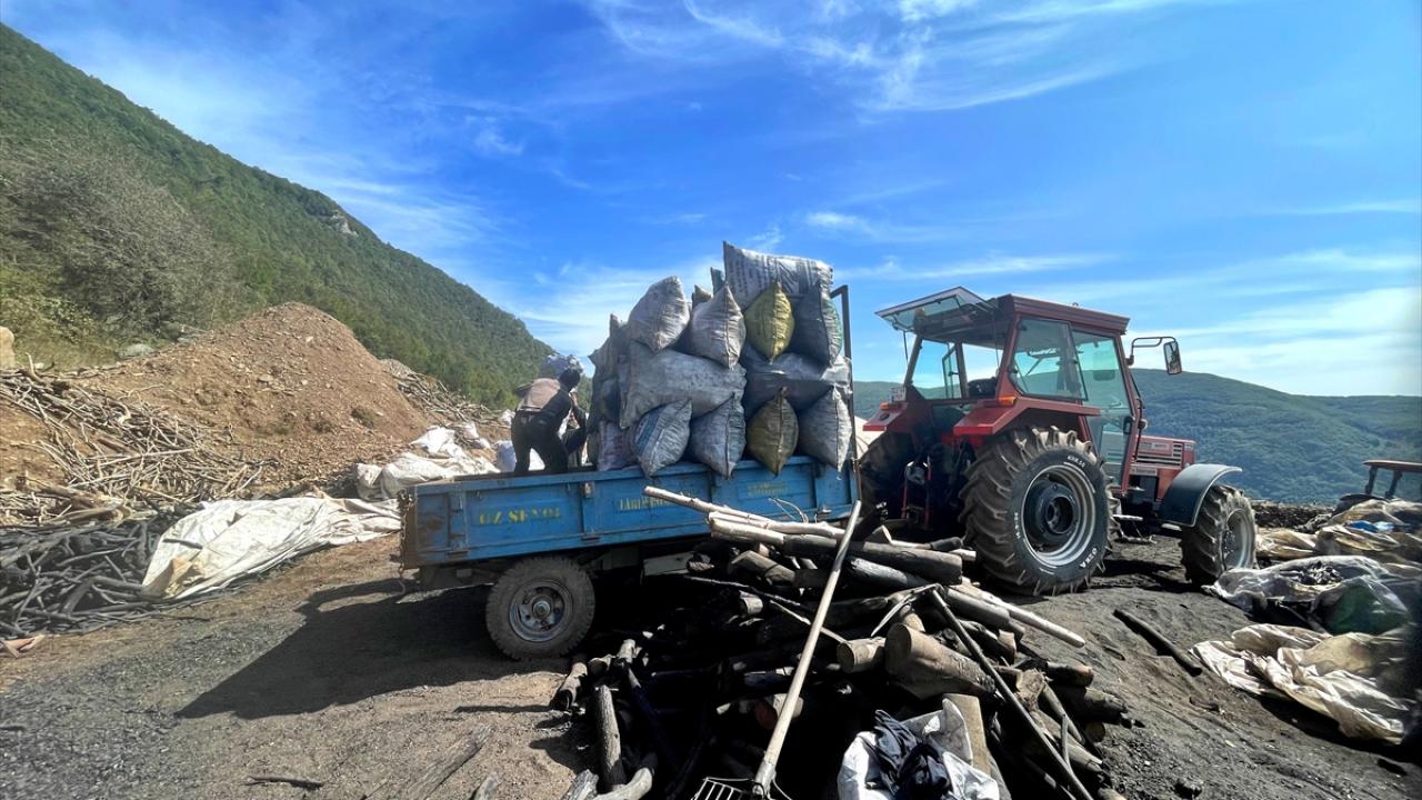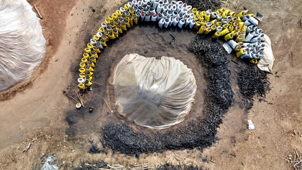 Aileler, zahmetli bir sürecin ardından elde ettikleri mangal kömürünü paketleyip satışa hazır hale getiriyor.