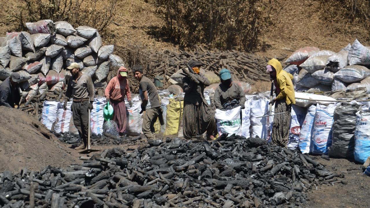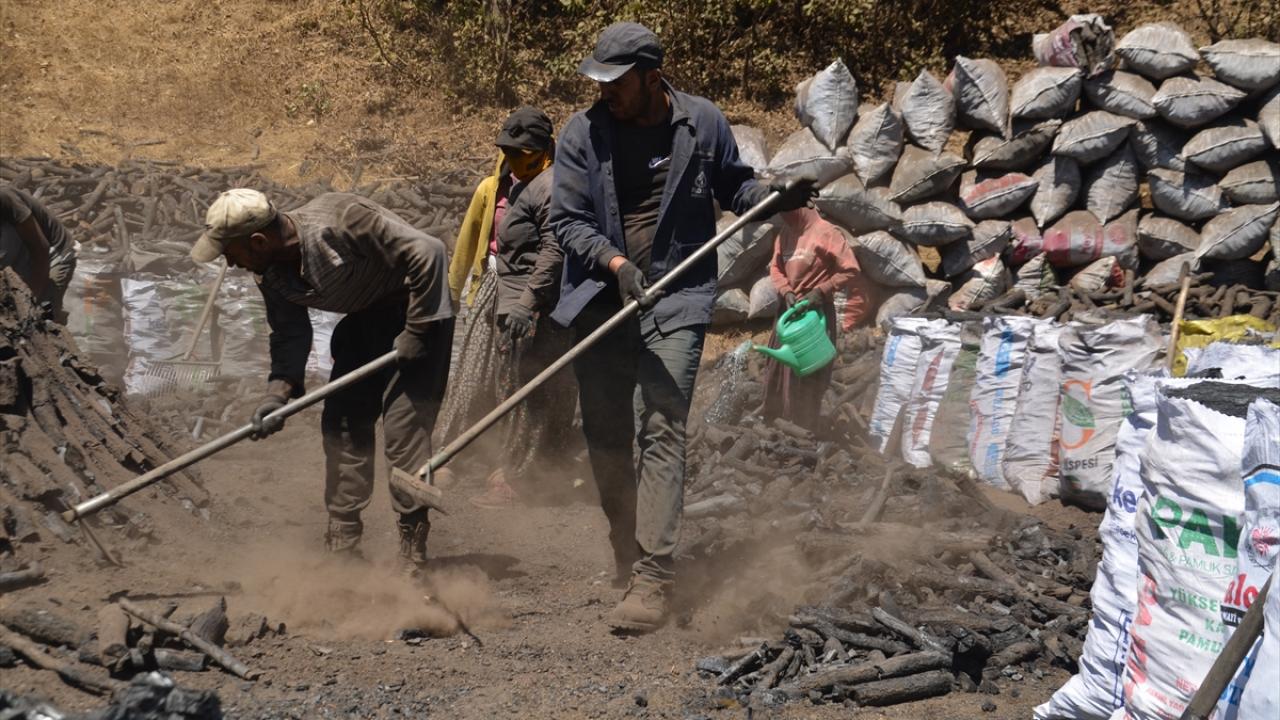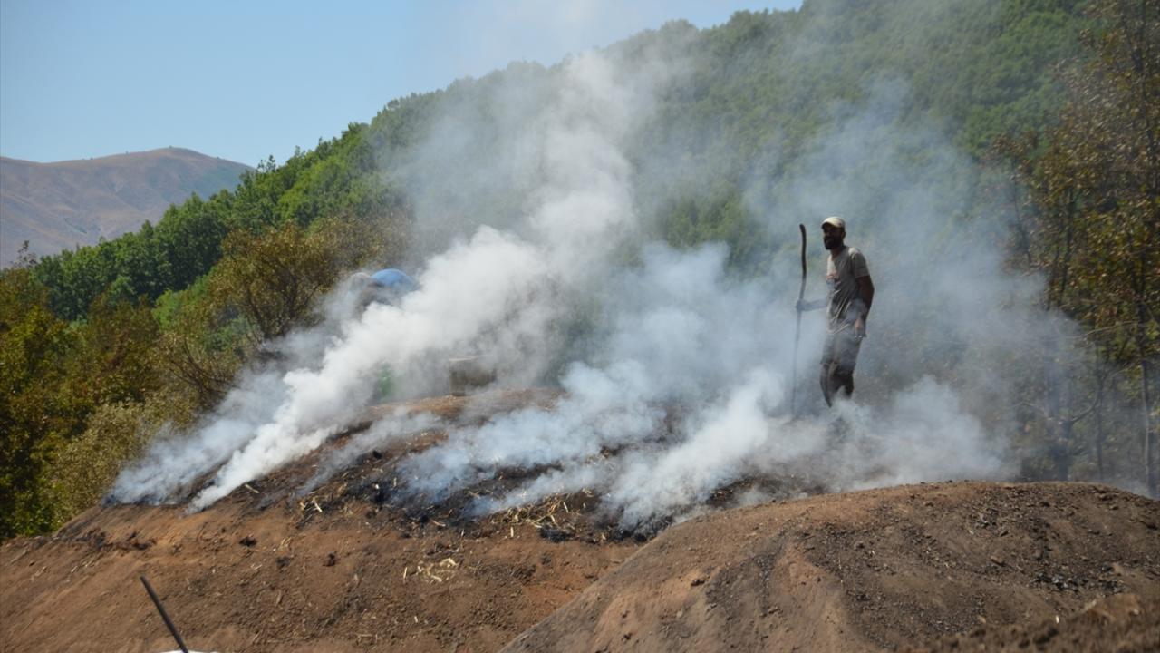 Muş'ta mangal kömürü üreten işçiler, bunaltıcı sıcakta ateş karşısında alın teri döküyor. Sıcaklığın 40 dereceyi bulduğu bölgedeki ormandan kesim izni verilen meşe odunlarını ocaklarda istifleyip üstünü toprakla kapattıktan sonra yakan işçiler, yaklaşık 20 gün boyunca ateş başında nöbet tutuyor.