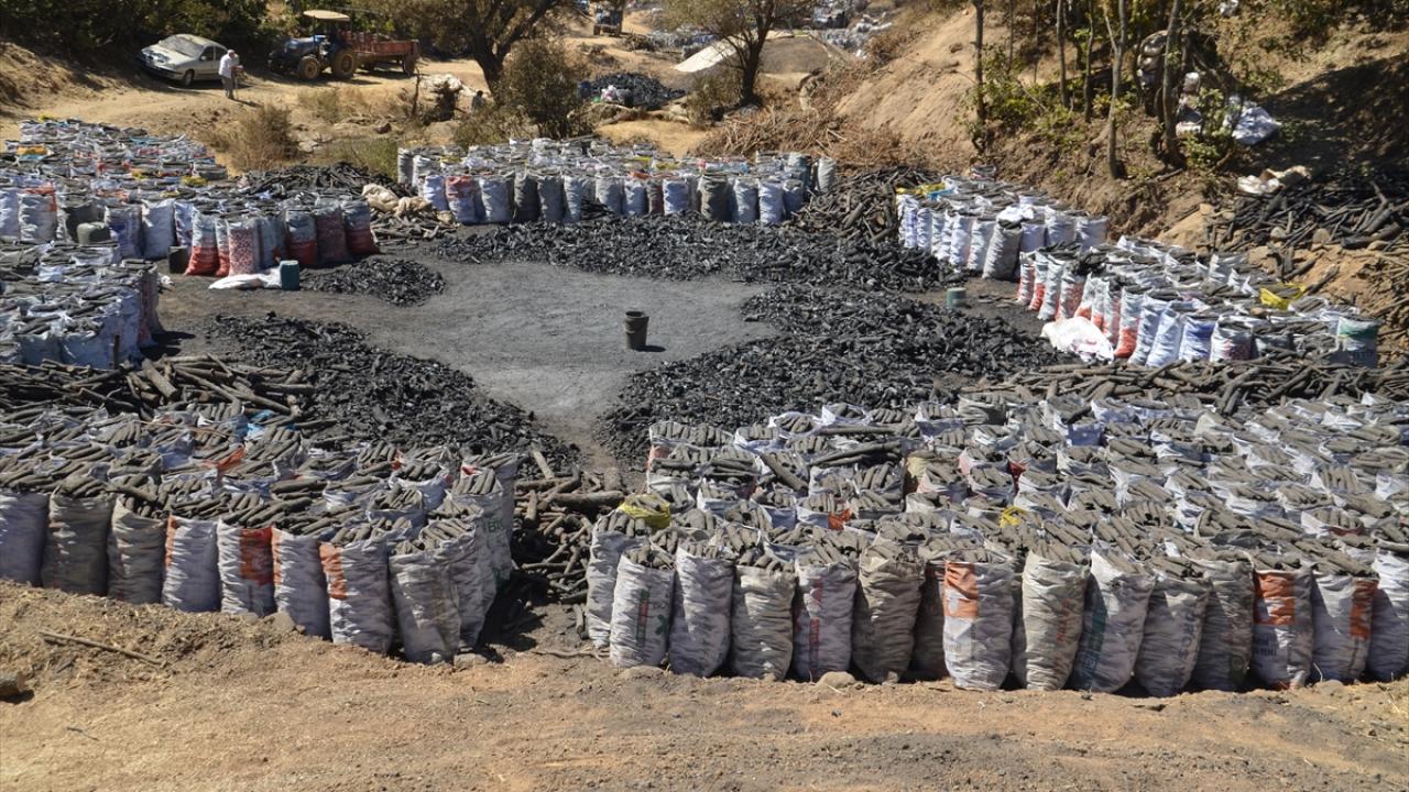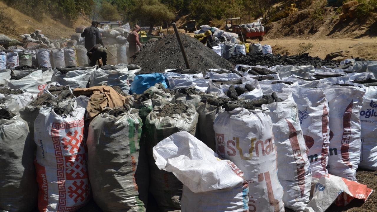Kömür üreticisi Mehmet Şerif Sazan, mangal kömürünü torbalara doldurarak satışa hazır hale getirdiklerini söyledi.