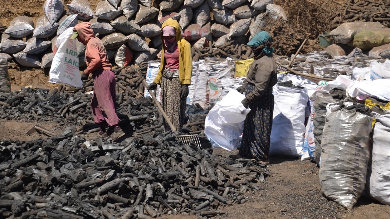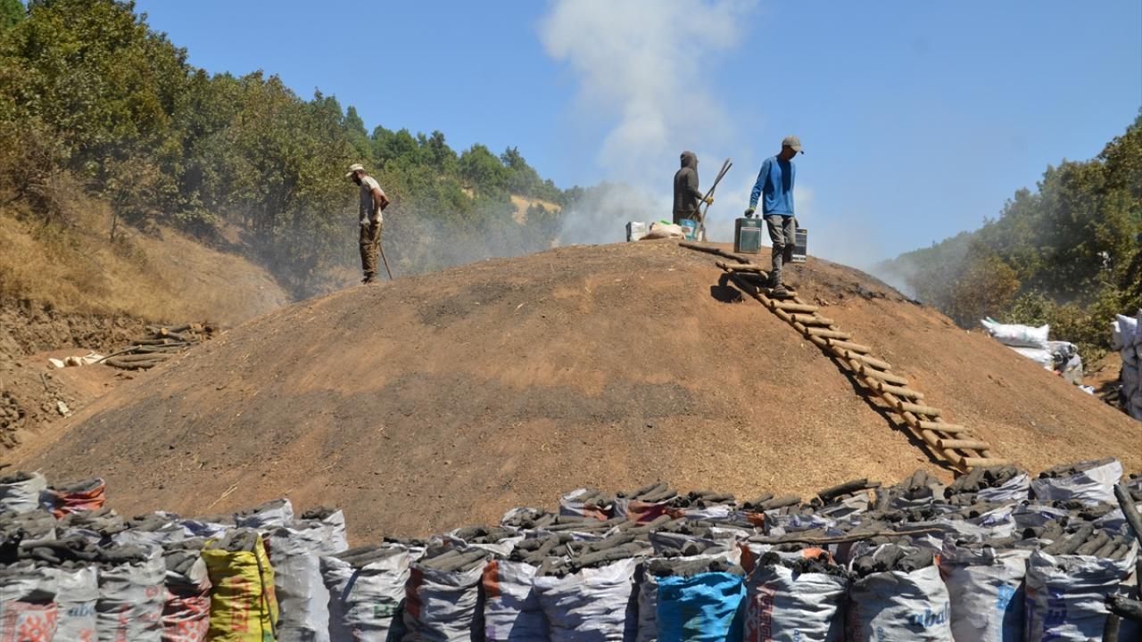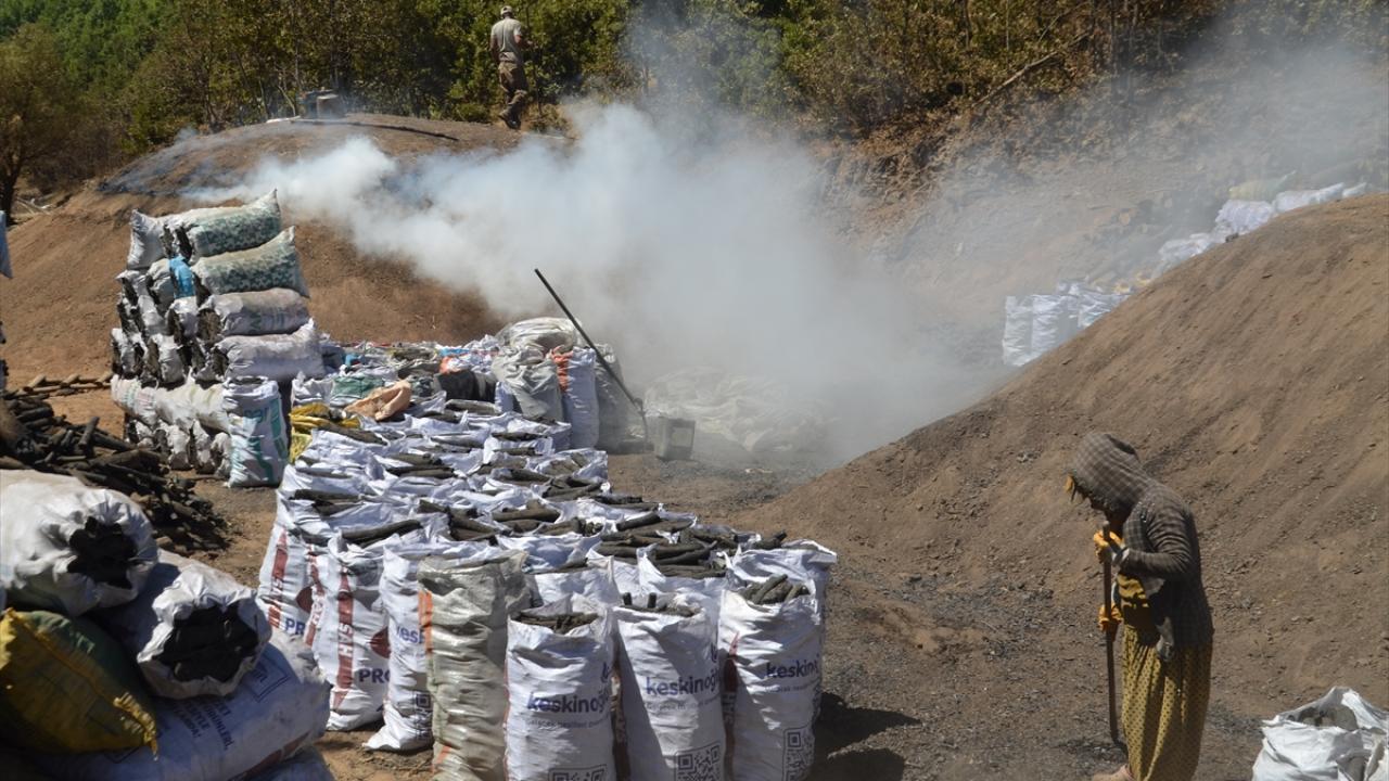 Mangal kömürü üreticileri hem havanın hem de ateşin sıcaklığıyla mücadele ediyor