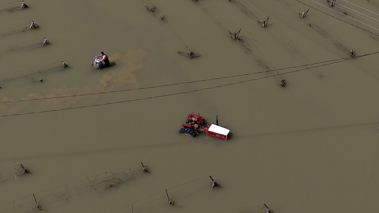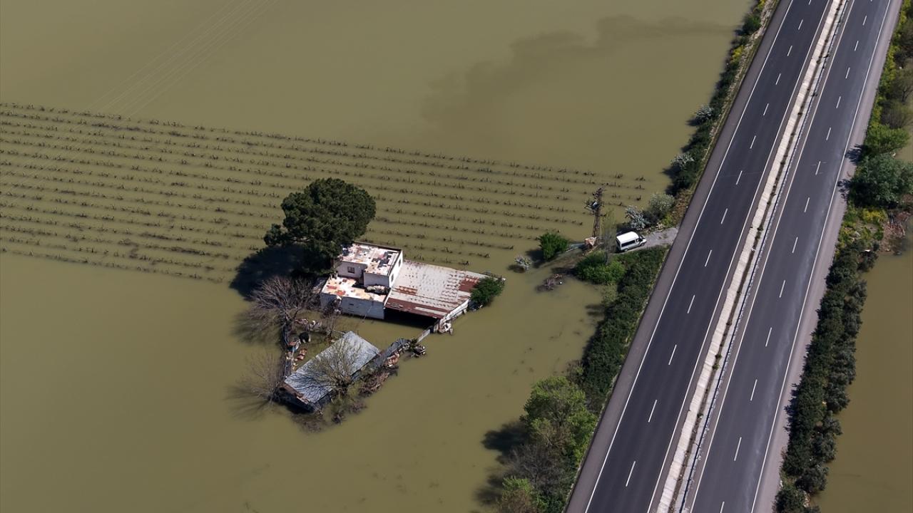 Manisa'nın Şehzadeler ilçesinde Gediz Nehri ve Nif Çayı'nın taşması sonucu tarım arazileri, bağ evleri ve hayvan damlarını su bastı.
