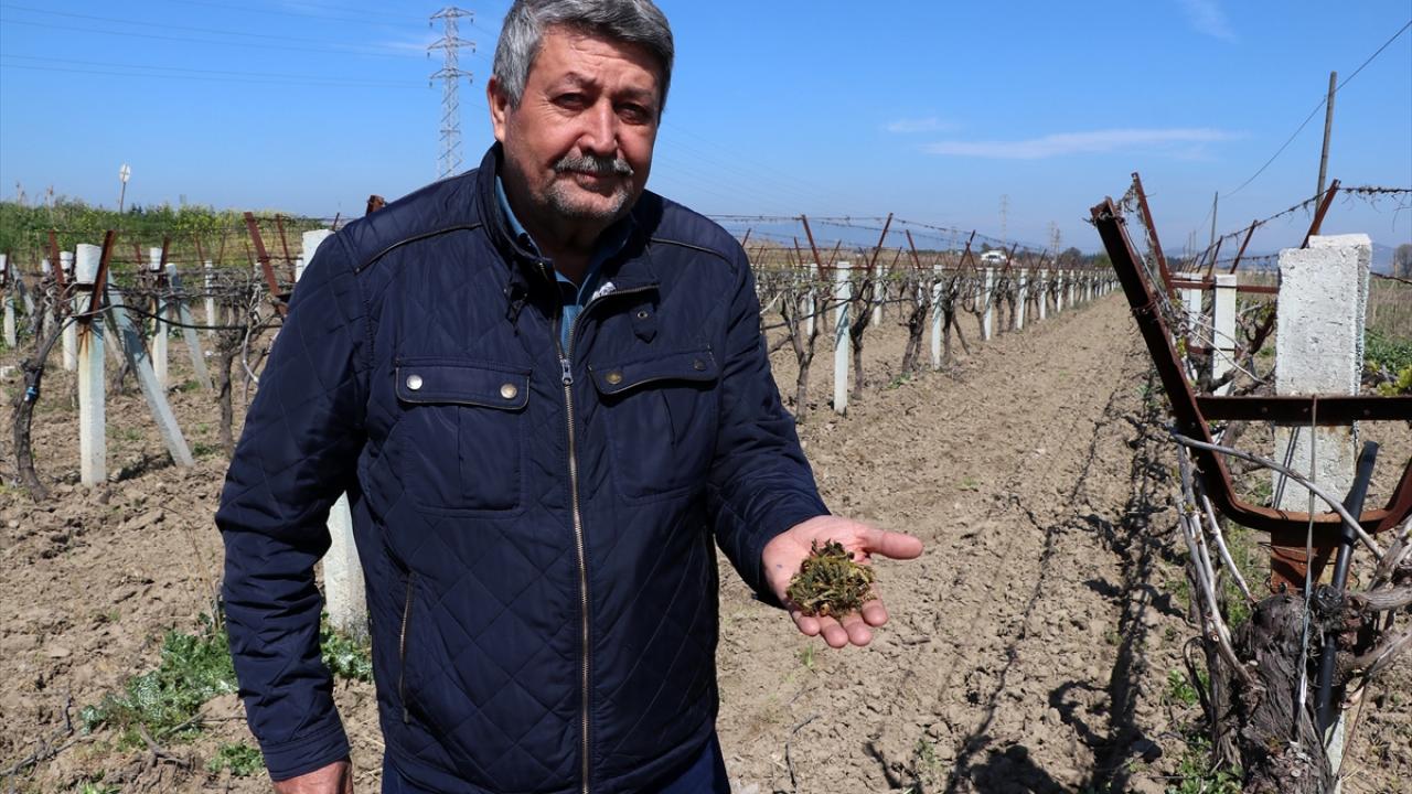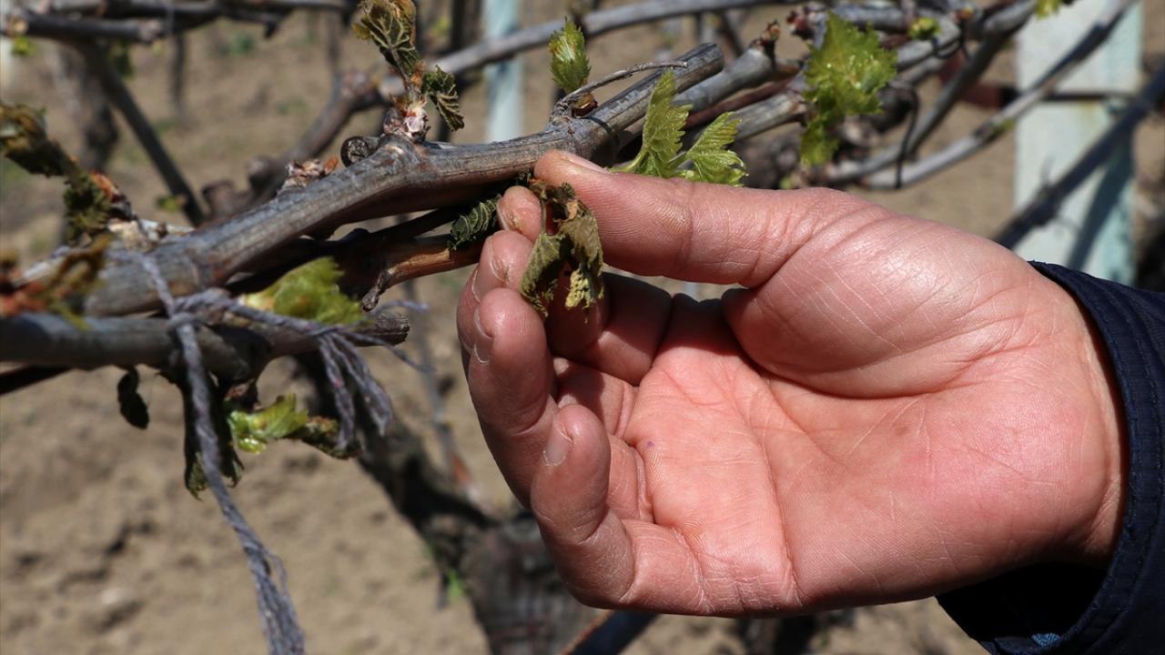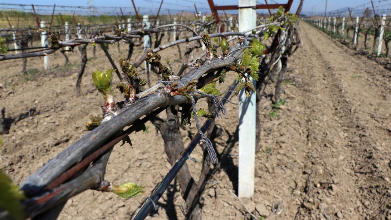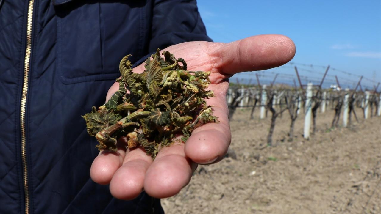 Manisa'nın bazı ilçelerinde, ilkbaharın gelmesiyle uyanan ve filiz vermeye başlayan üzüm bağlarının bir bölümü, 29 Mart gecesi etkili olan zirai don nedeniyle zarar gördü.
